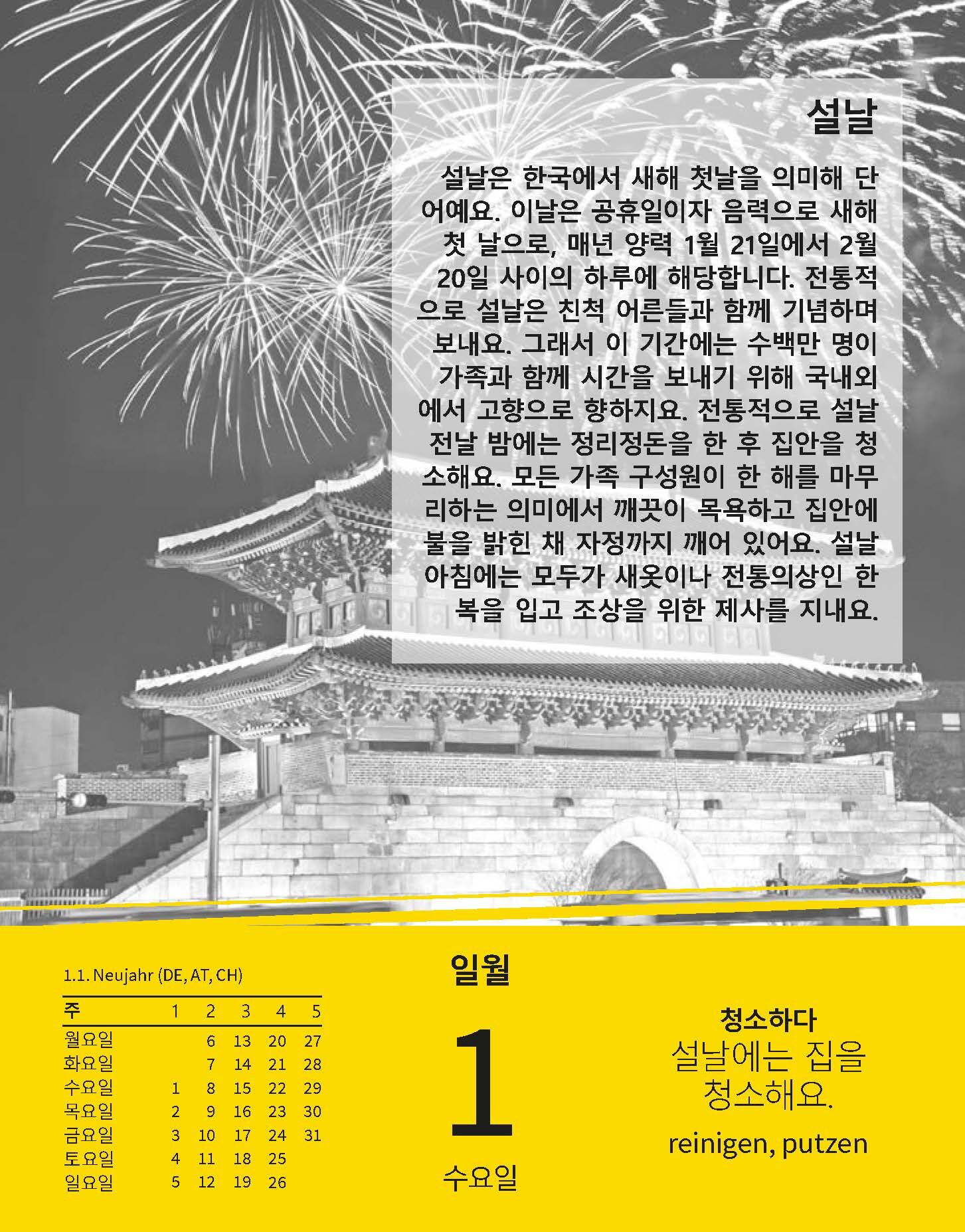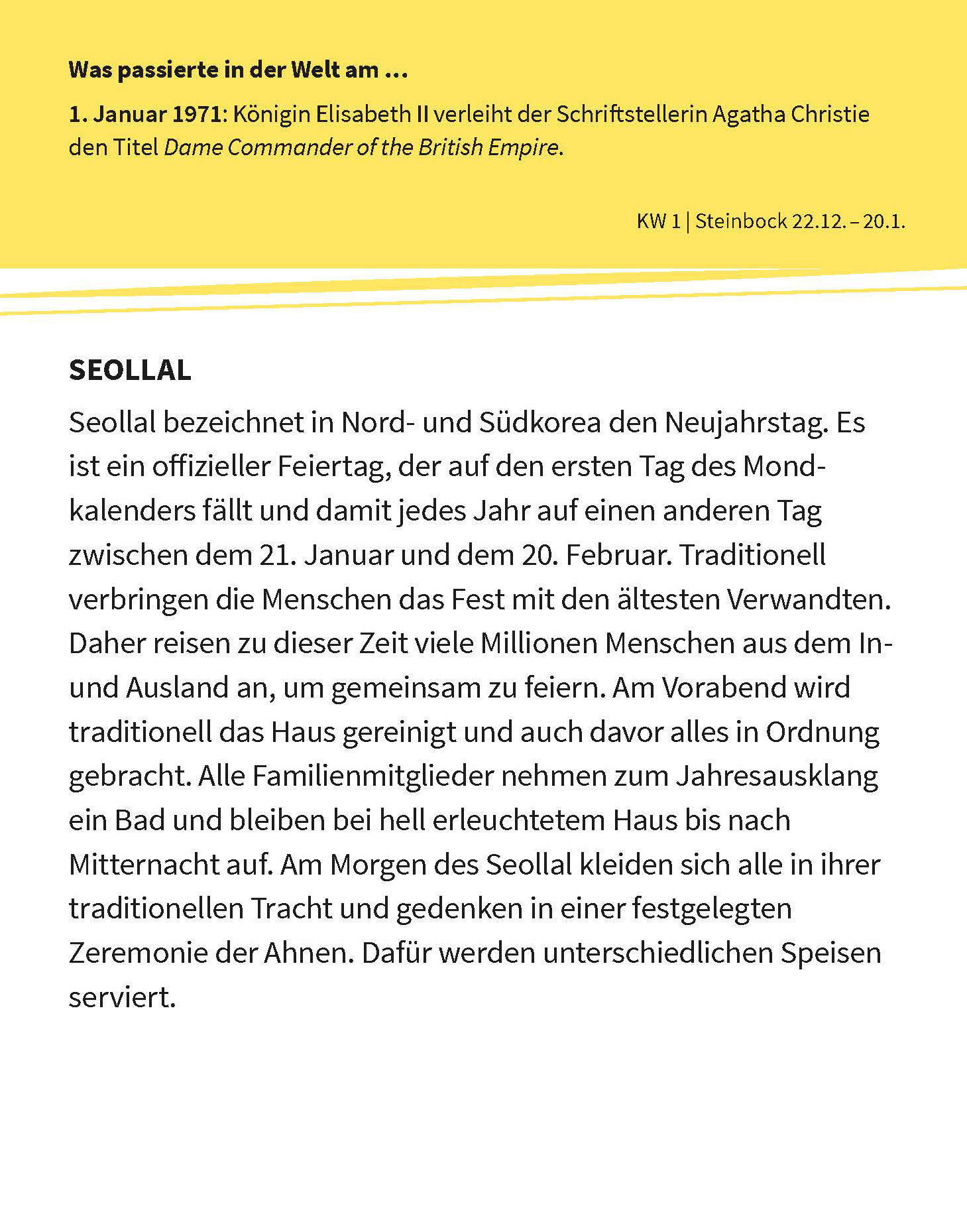 Täglich 5 bis 10 Minuten Lernspaß! Der perfekte Mix aus Sprachtraining, Information und Unterhaltung Jedes Kalenderblatt mit Vokabel des Tages inkl. Übersetzung und Beispielsatz Effektiv lernen, üben und rätseln Wochenrhythmus: Montag: Wissenswertes zu Land &...