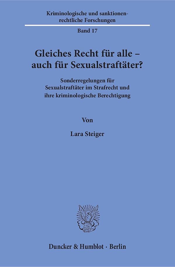 Die Autorin setzt sich damit auseinander, inwieweit der Stand der kriminologischen Forschung strafrechtliche Sonderregelungen für Sexualstraftäter rechtfertigt, die auf ein besonderes Sicherungsbedürfnis der Gesellschaft gegenüber dieser Tätergruppe gestützt w...