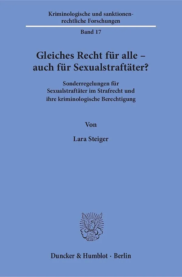 Die Autorin setzt sich damit auseinander, inwieweit der Stand der kriminologischen Forschung strafrechtliche Sonderregelungen für Sexualstraftäter rechtfertigt, die auf ein besonderes Sicherungsbedürfnis der Gesellschaft gegenüber dieser Tätergruppe gestützt w...
