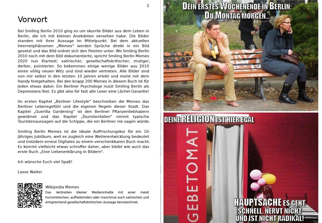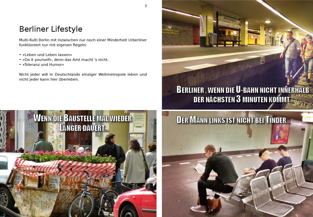 Geschenkbuch Smiling Berlin Memes - Das Berliner Lebensgefühl in kommentierten lustigen BIldern skizziert in knapp 200 Berlinmemes (kommentierte lustige Bildern) humorvoll und frech den Berliner Lifestyle, die Berliner Liebe zum Gärtnern und die Touristenfalle...