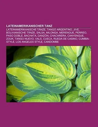 Quelle: Wikipedia. Seiten: 40. Kapitel: Lateinamerikanische Tänze, Tango Argentino, Jive, Bolivianische Tänze, Salsa, Milonga, Merengue, Perreo, Paso Doble, Bachata, Danzón, Chacarera, Canyengue, Zouk, Tango Nuevo, Vals, Cueca, Rueda de casino, Cumbia-Style, L...