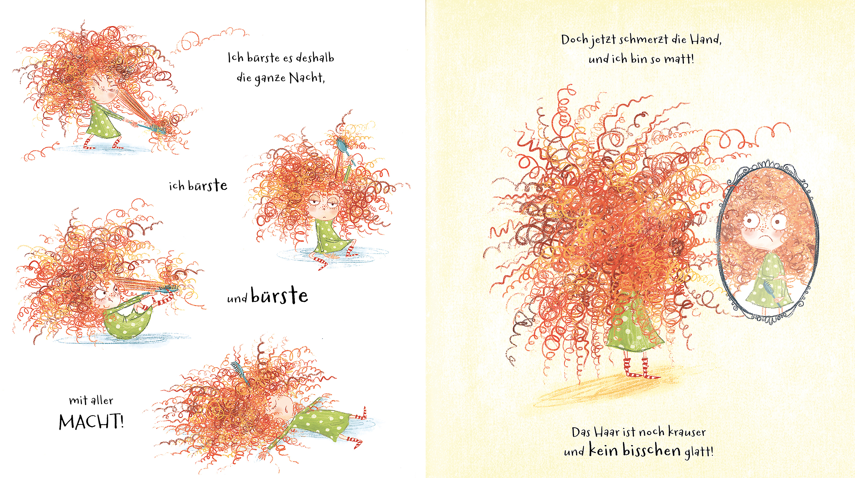 Überall Kringel und Wirbel am Schopf, zu wirr und verrückt dieser Wuschelkopf! Nicht zum Aushalten, diese Locken! Weder nächtelanges Bürsten, noch Wasser, noch Klebeband können die ungeliebten Kringel glätten Einfach ungerecht, findet Wuschelkopf. Doch als sie...