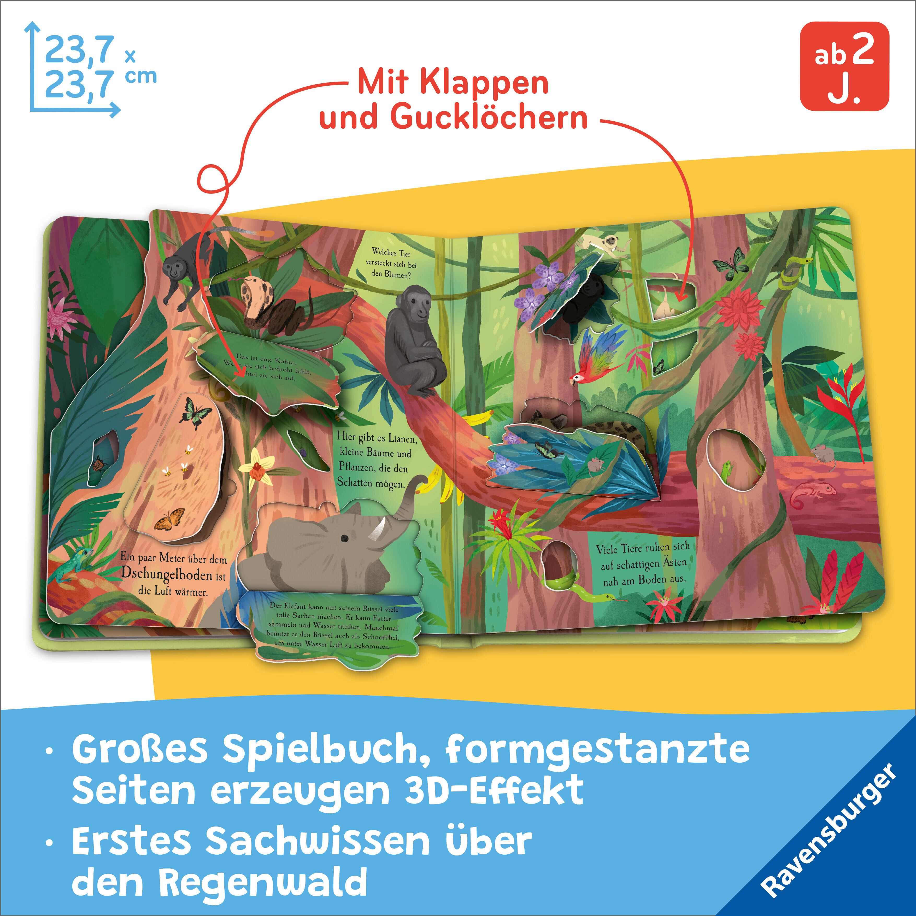 Eintauchen in den faszinierenden Regenwald! Komm mit auf große Entdeckungstour durch den farbenfrohen Dschungel. Erkunde die verschiedenen Baumschichten und begegne dabei den unterschiedlichsten Tieren. Erstes Sachwissen über Flora und Fauna wird in angemessen...
