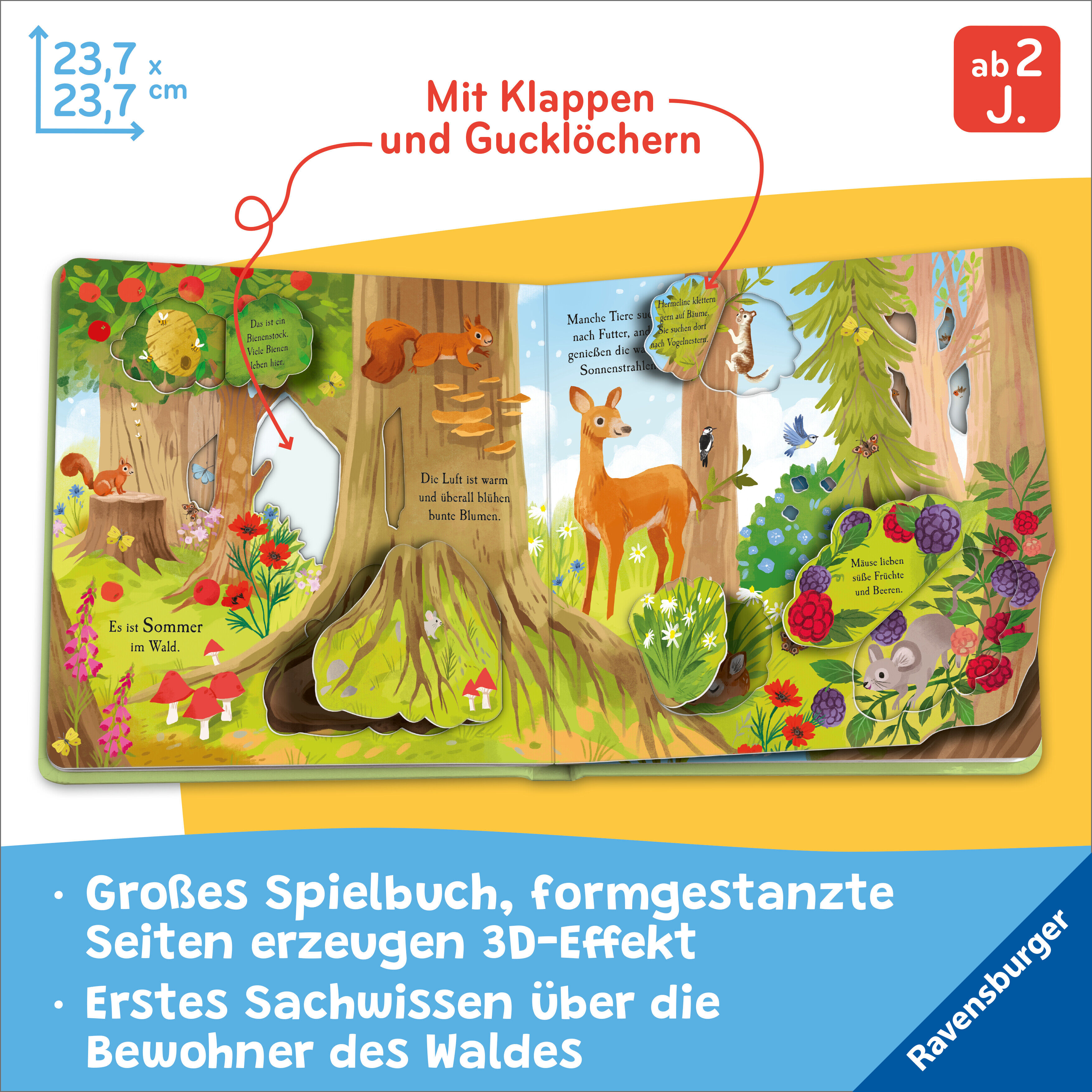 Eintauchen in den wundervollen Wald! Komm mit auf große Entdeckungstour durch den vielfältigen Wald. Erkunde ihn in den verschiedenen Jahreszeiten und begegne dabei den unterschiedlichsten Tieren. Erstes Sachwissen über Flora und Fauna wird in angemessenen Tex...