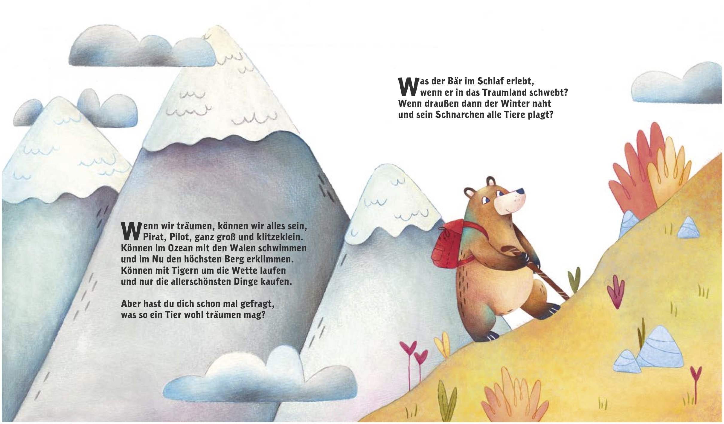 Wovon träumen Tiere? Ein buntes Bilderbuch entführt uns in die Welt der Fantasie Wenn wir träumen, können wir alles sein. Egal ob Pirat oder Pilot, ganz groß oder klitzeklein. So geht es auch Bär, Vogel, Schwein und den anderen Tieren in diesem charmanten Bild...