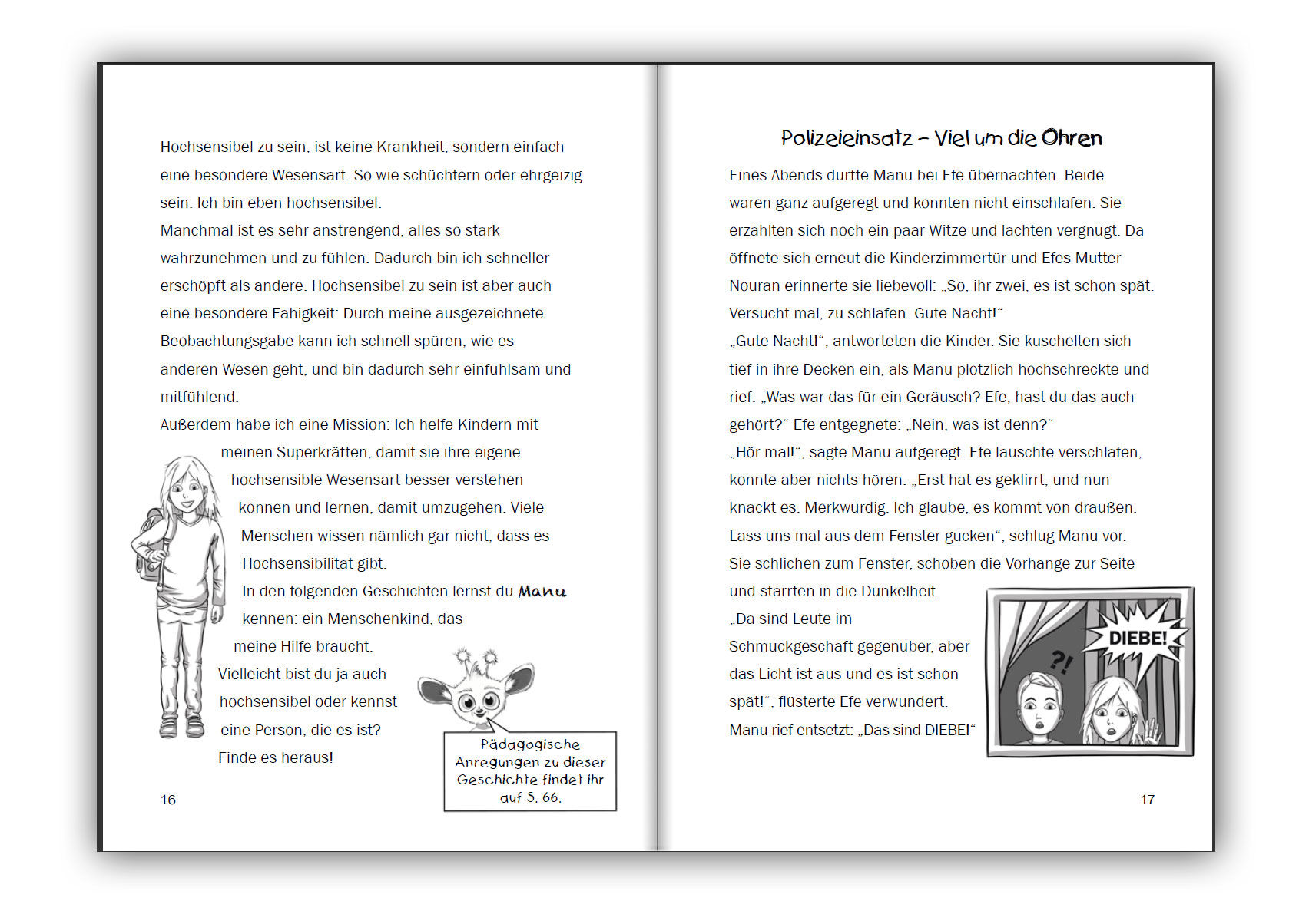 In diesem Buch lernen hochsensible Kinder, ihre Wahrnehmungen und Gefühle zu verstehen und selbst zu regulieren. Sie werden achtsam angeleitet, das individuelle Energielevel zu spüren und rechtzeitig Pausen zu machen, um Kraft zu tanken. Spielerisch entdecken sie mit Manu und Sensi ihre eigenen Superkräfte.
