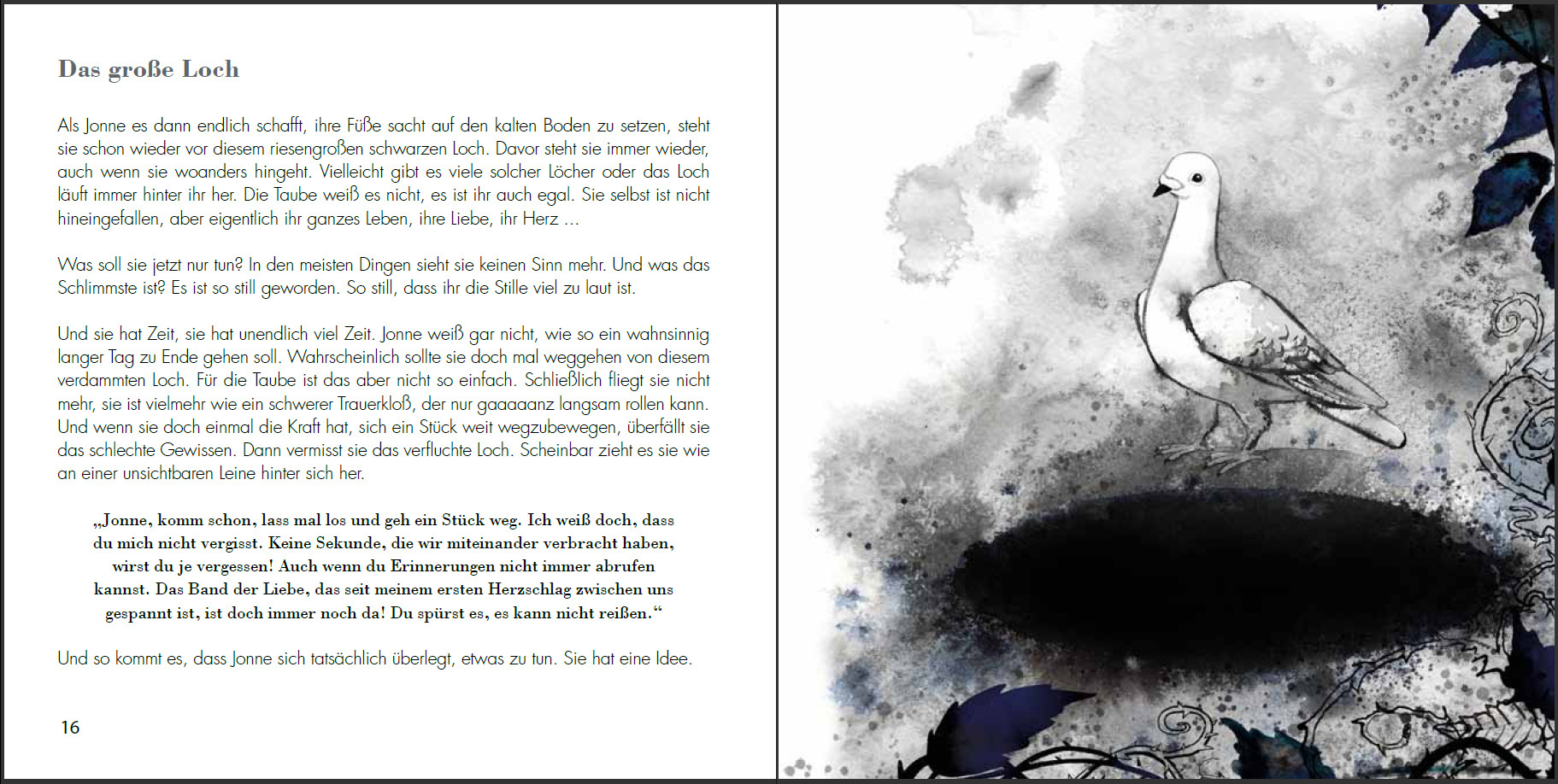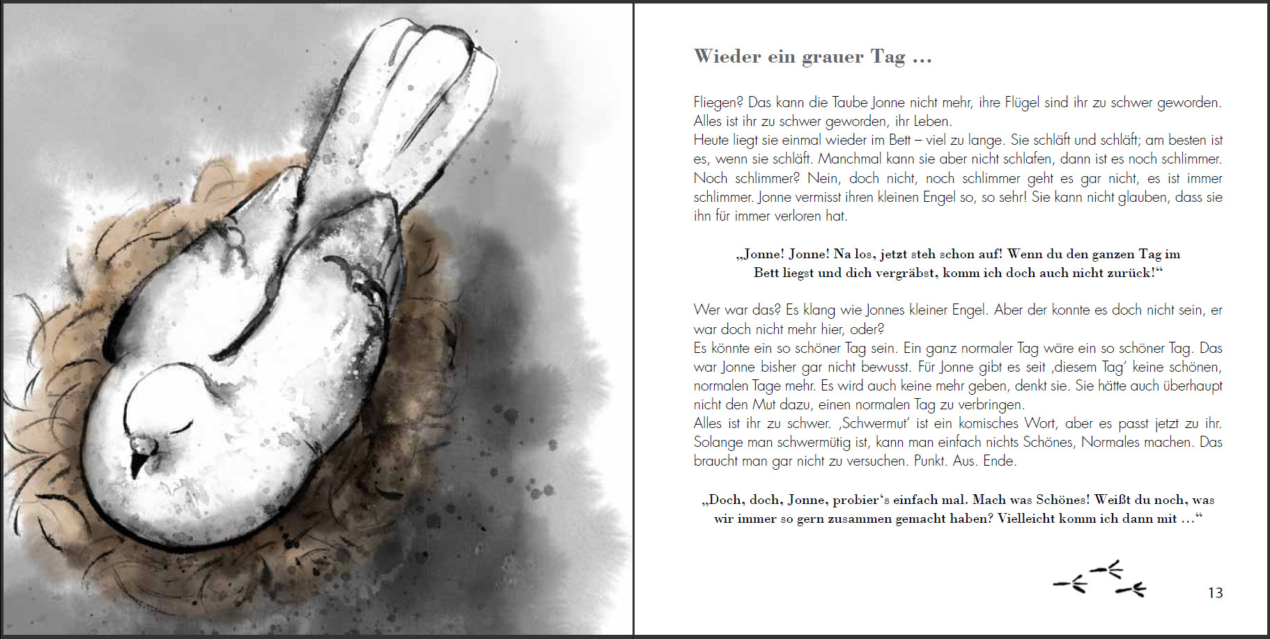 In diesem liebevoll gestalteten Trauerbuch erzählt der kleine Engel seinen Eltern eine Geschichte: Es ist die Geschichte der Taube Jonne. Jonne hat ihr Kind verloren und kann seither nicht mehr fliegen. Auf mutmachende und mitreißende Art und Weise kämpft sie ...