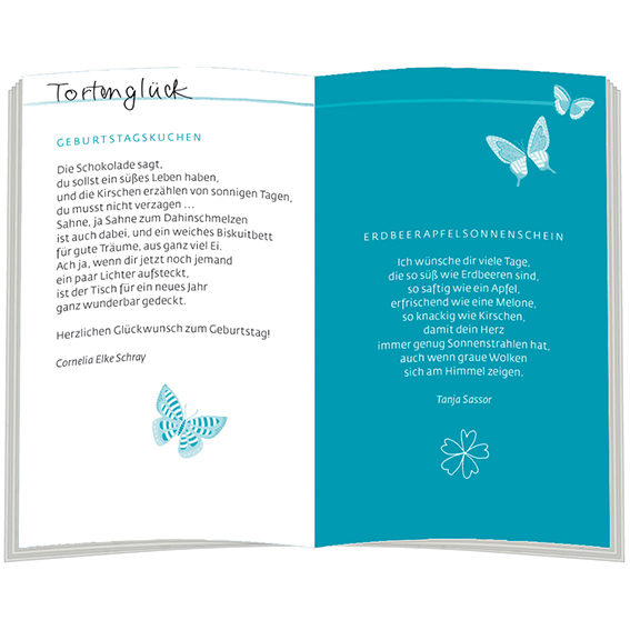 Tortenglück und Lebensfreude, Sonnenschein und Sternenfunkeln. Die besten Wünsche zum neuen Lebensjahr sind in diesem Heft versammelt. Alles Gute zum Geburtstag!