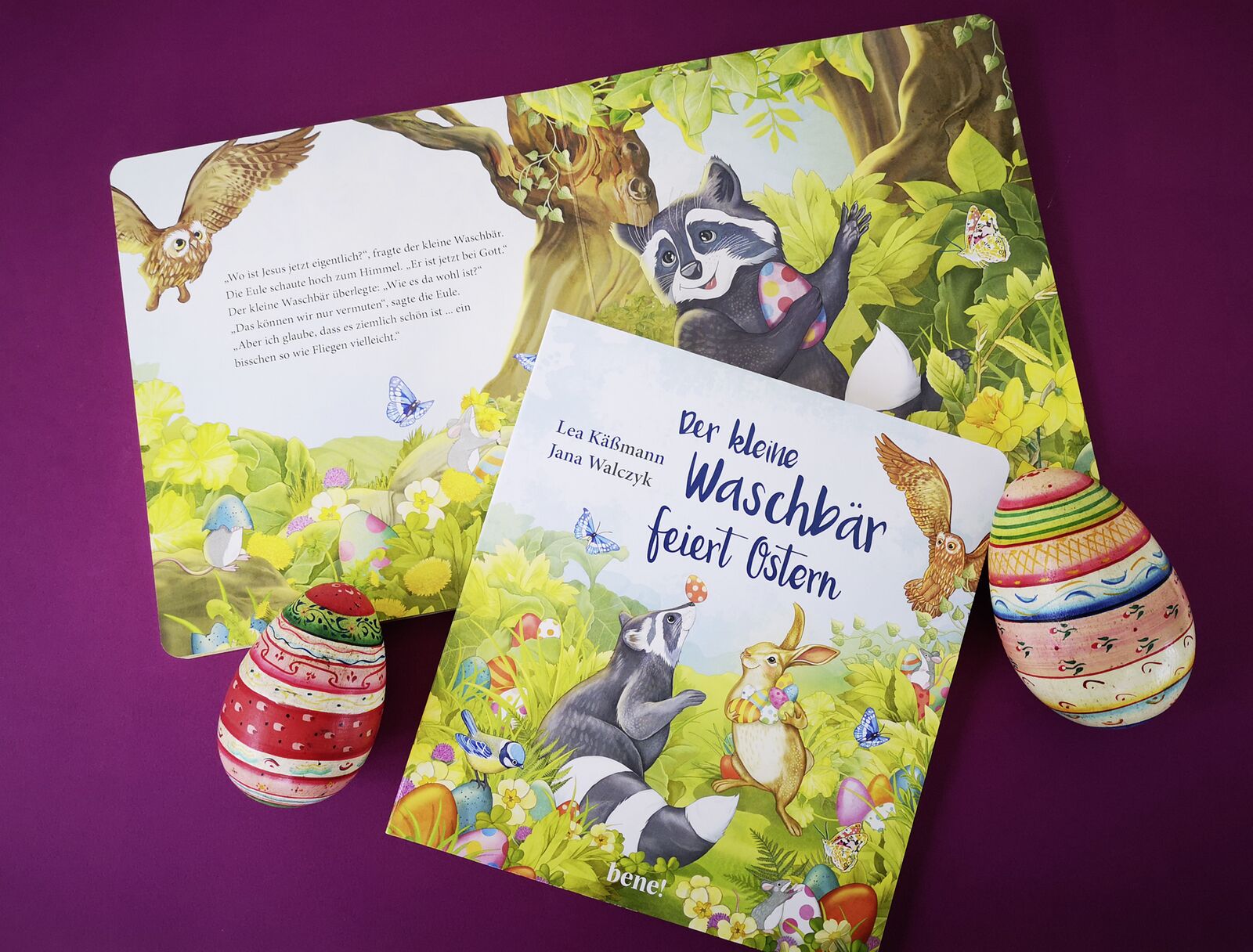 Lea Käßmann vermittelt Kindern ab 2 Jahren in dieser liebevoll von Jana Walczyk illustrierten Vorlesegeschichte die Bedeutung von Ostern. Der kleine Waschbär wird von einem munteren Hasen geweckt, der auf ein großes Nest mit bunten Eiern zeigt: Die hier müsse...