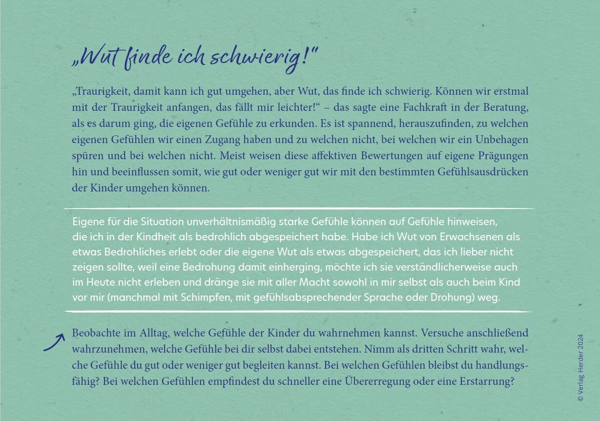 Eine bedürfnisorientierte Grundhaltung sollte in Kitas inzwischen Voraussetzung sein. In der Realität sieht das allerdings oft ganz anders aus. Und wie kann das im oft hektischen und stressigen Kita-Alltag überhaupt gelingen? Mit diesen Reflexionskarten komme...