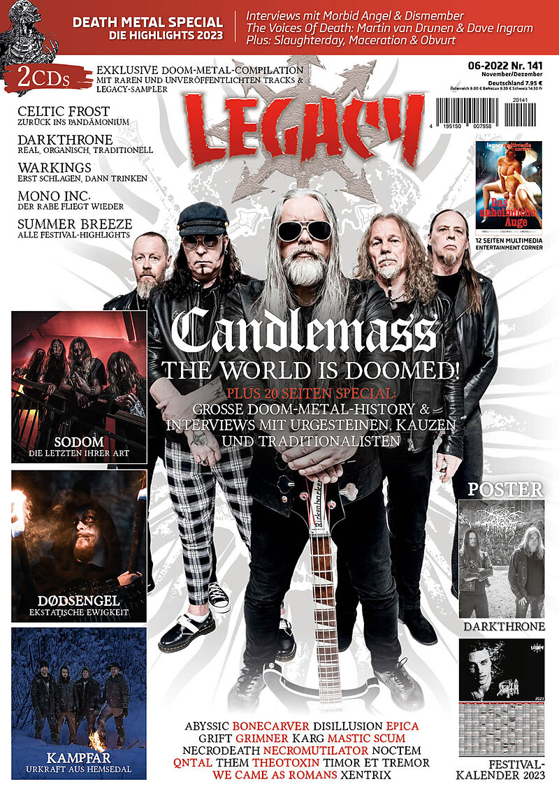 Aus dem Inhalt der Ausgabe: Candlemass & doooomige Ausflüge: Das 13. Candlemass-Album (Soundcheck-Sieger!) ist nicht nur Anlass, die Truppe mit einer Titelstory zu würdigen, sondern war uns auch Impuls, ein Doom-Special von epischer Länge zu produzieren. N...