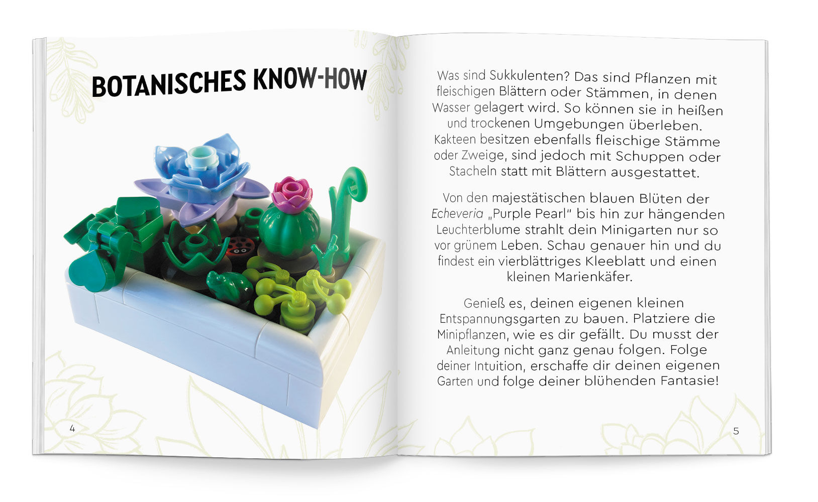 Natur- und Blumenfreude in edler Verpackung Den eigenen Minigarten bauen Es sind die kleinen Freuden, die Glück schenken: Minibox mit einem kleinen Garten zum Selberbauen und Verschönern des Tischs. Diese Box enthält LEGO® Elemente zum Blumenbauen sowie ein Mi...