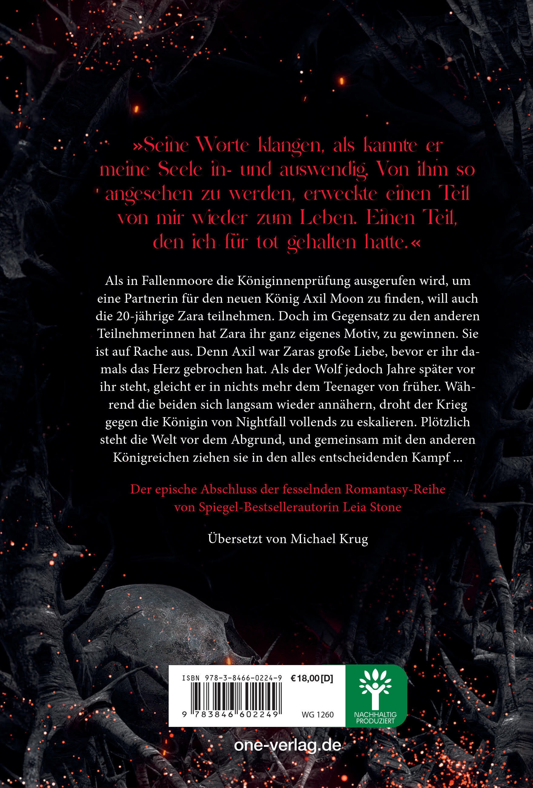 Als in Fallenmoore die Königinnenprüfung ausgerufen wird, um eine Partnerin für den neuen König Axil Moon zu finden, will auch die 20-jährige Zara teilnehmen. Doch im Gegensatz zu den anderen Teilnehmerinnen hat Zara ihr ganz eigenes Motiv, zu gewinnen. Sie i...