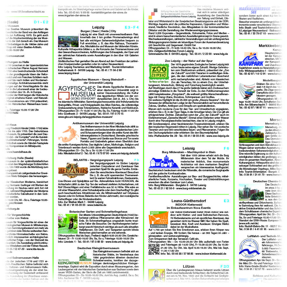 Sachsen und Sachsen-Anhalt haben mit ihren Städten Wittenberg, Dessau, Leipzig, Halle, Altenburg u. a. viel zu bieten. So wartet in Wittenberg das Lutherhaus auf Besucher, in Dessau das zum Weltkulturerbe zählende Bauhausgebäude. Leipzig kann nicht nur mit zah...