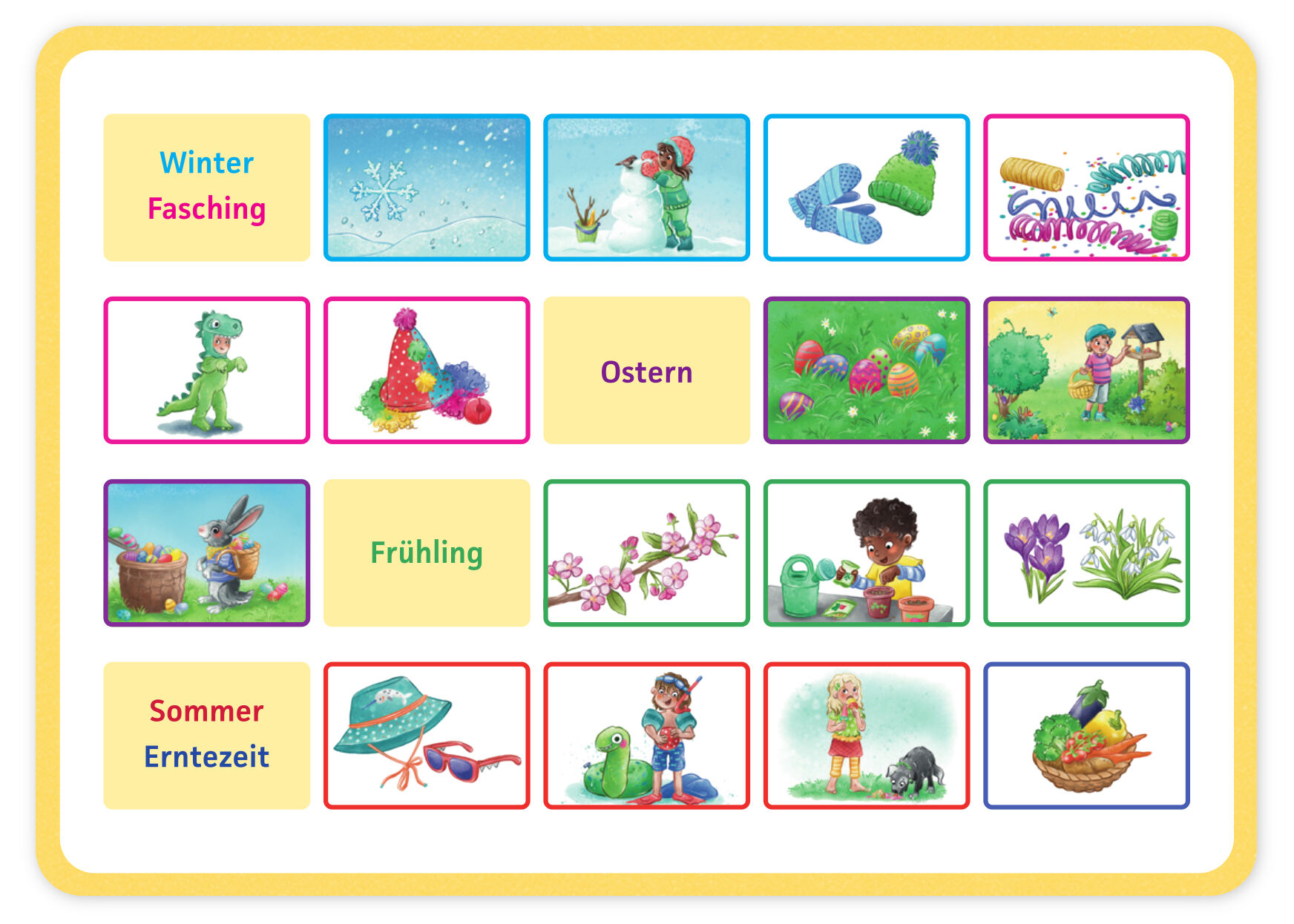40 bunte Bildkarten für den Kindergarten: Spielerisch die Jahreszeiten und Feste entdecken, Wortschatz und Merkfähigkeit fördern ideal für Kita & Morgenkreis. Das kann ich schon Jahreszeiten Frühling, Sommer, Herbst und Winter die Jahreszeiten prägen unser...
