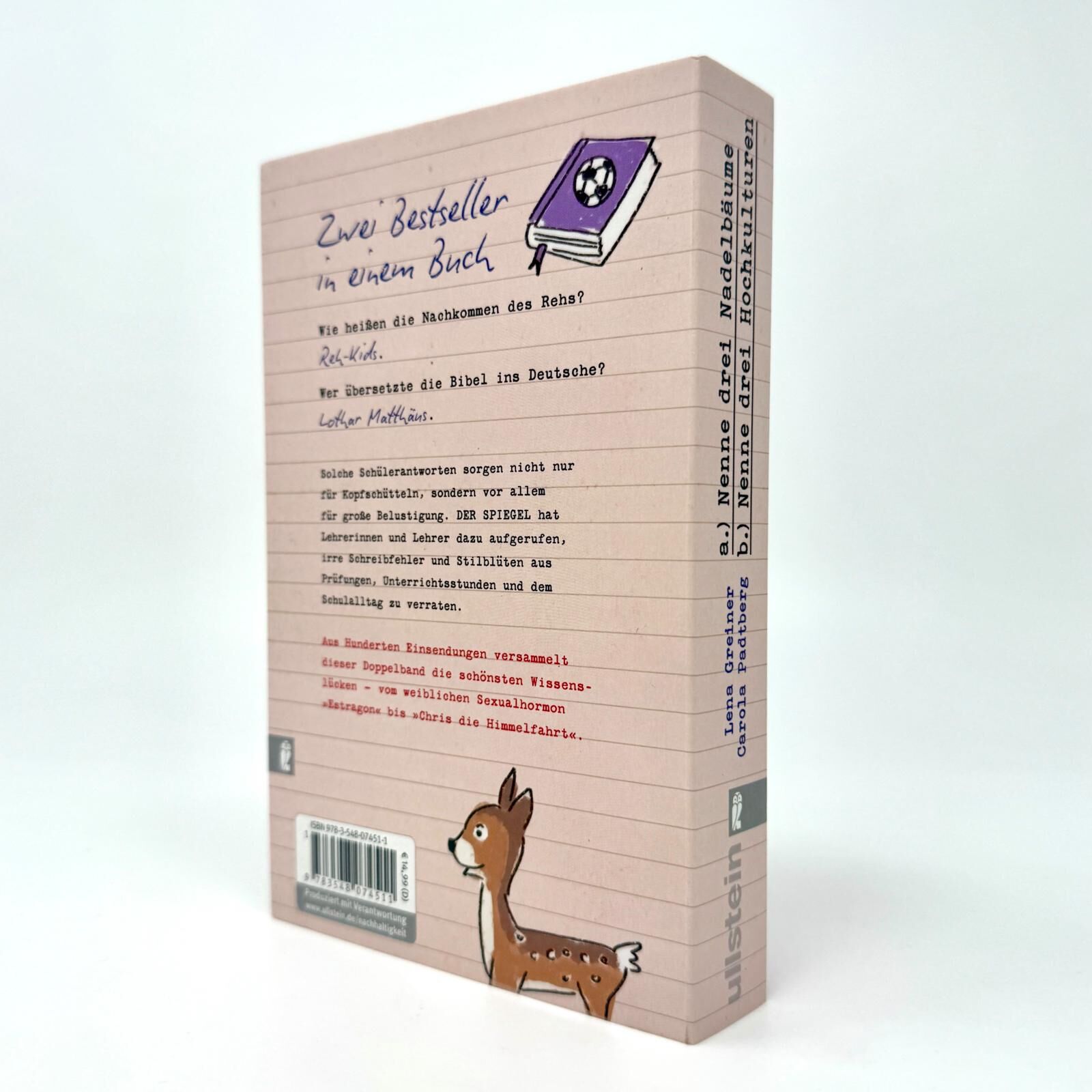 Zwei Bestseller in einem Buch Wie heißen die Nachkommen des Rehs? Reh-Kids. Wer übersetzte die Bibel ins Deutsche? Lothar Matthäus. Solche Schülerantworten sorgen nicht nur für Kopfschütteln, sondern vor allem für große Belustigung. DER SPIEGEL hat Lehrerinne...