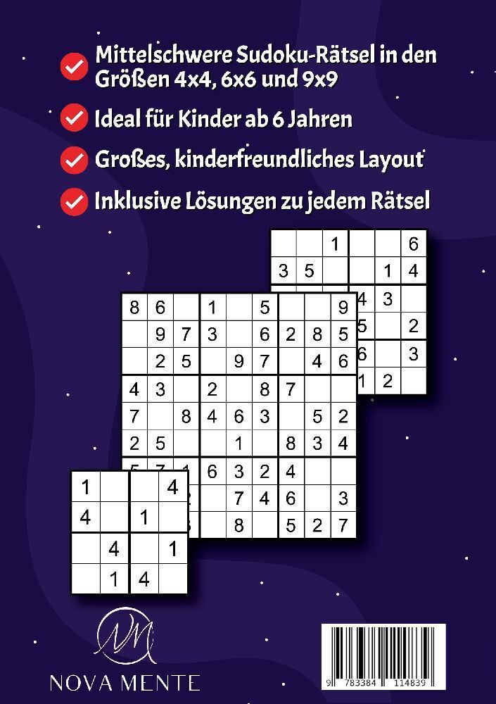 Erlebe mit Deinem Kind den Spaß und die Herausforderung des Sudoku-Lösens! Dieses Rätselbuch mit neuen Sudokus, ideal für Kinder ab 6 Jahren, bietet eine unterhaltsame und lehrreiche Möglichkeit, wichtige Fähigkeiten zu entwickeln und zu fördern. Was dieses Bu...