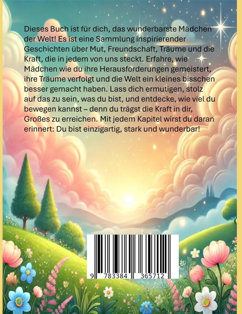In Für das wunderbarste Mädchen der Welt erwarten dich Geschichten voller Mut, Freundschaft, Kreativität und Selbstliebe. Diese fesselnde Sammlung von Erzählungen ist speziell für junge Mädchen geschrieben, die sich ermutigen lassen wollen, an sich selbst zu g...