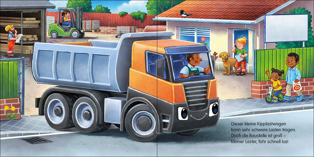 Den ganzen Tag war der kleine Kipplaster auf der Baustelle unterwegs, damit der neue Kindergarten bald fertig wird. Doch jetzt ist Zeit zum Schlafengehen. Zuvor wünscht er noch dem Radlader und dem Betonmischer Gute Nacht. Ein zauberhaftes Gute-Nacht-Buch mit ...