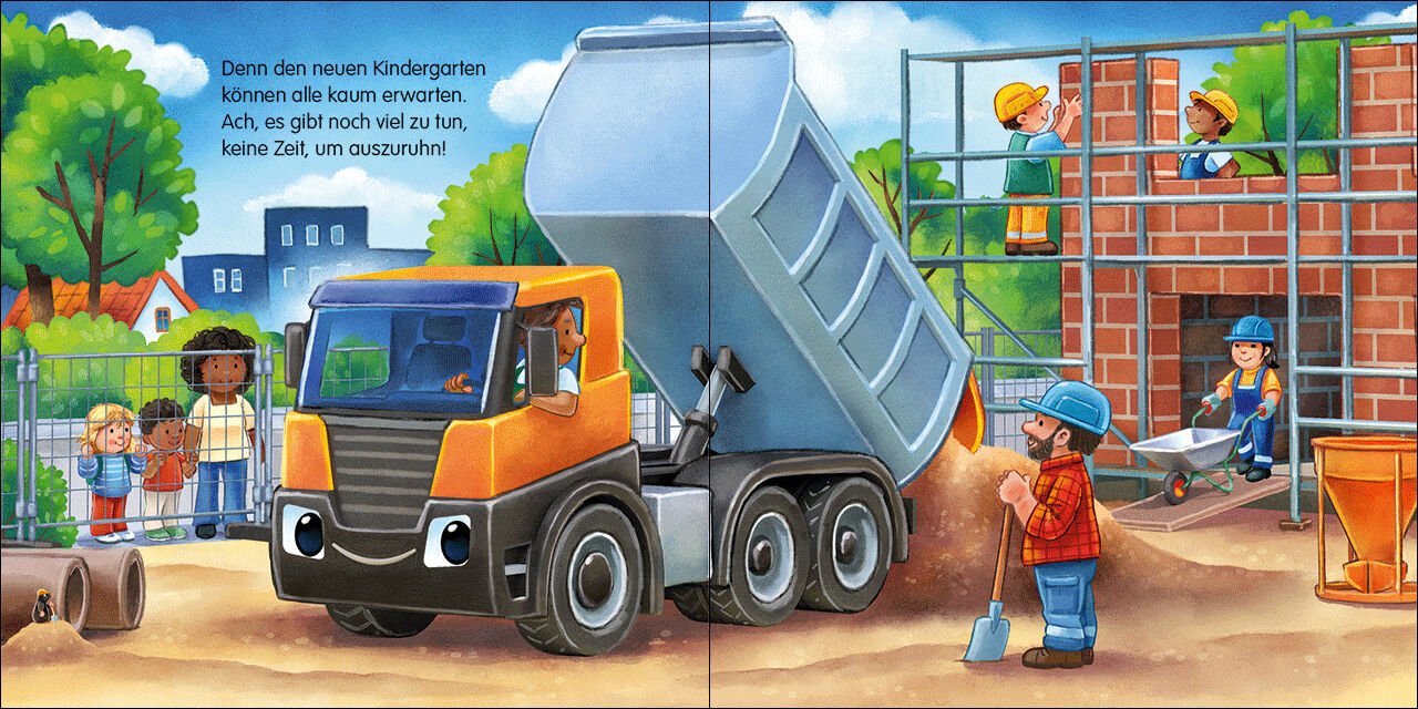 Den ganzen Tag war der kleine Kipplaster auf der Baustelle unterwegs, damit der neue Kindergarten bald fertig wird. Doch jetzt ist Zeit zum Schlafengehen. Zuvor wünscht er noch dem Radlader und dem Betonmischer Gute Nacht. Ein zauberhaftes Gute-Nacht-Buch mit ...