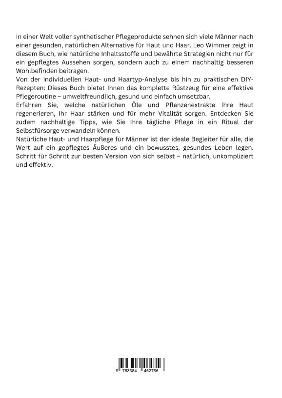 In einer Welt voller synthetischer Pflegeprodukte sehnen sich viele Männer nach einer gesunden, natürlichen Alternative für Haut und Haar. Leo Wimmer zeigt in diesem Buch, wie natürliche Inhaltsstoffe und bewährte Strategien nicht nur für ein gepflegtes Ausseh...