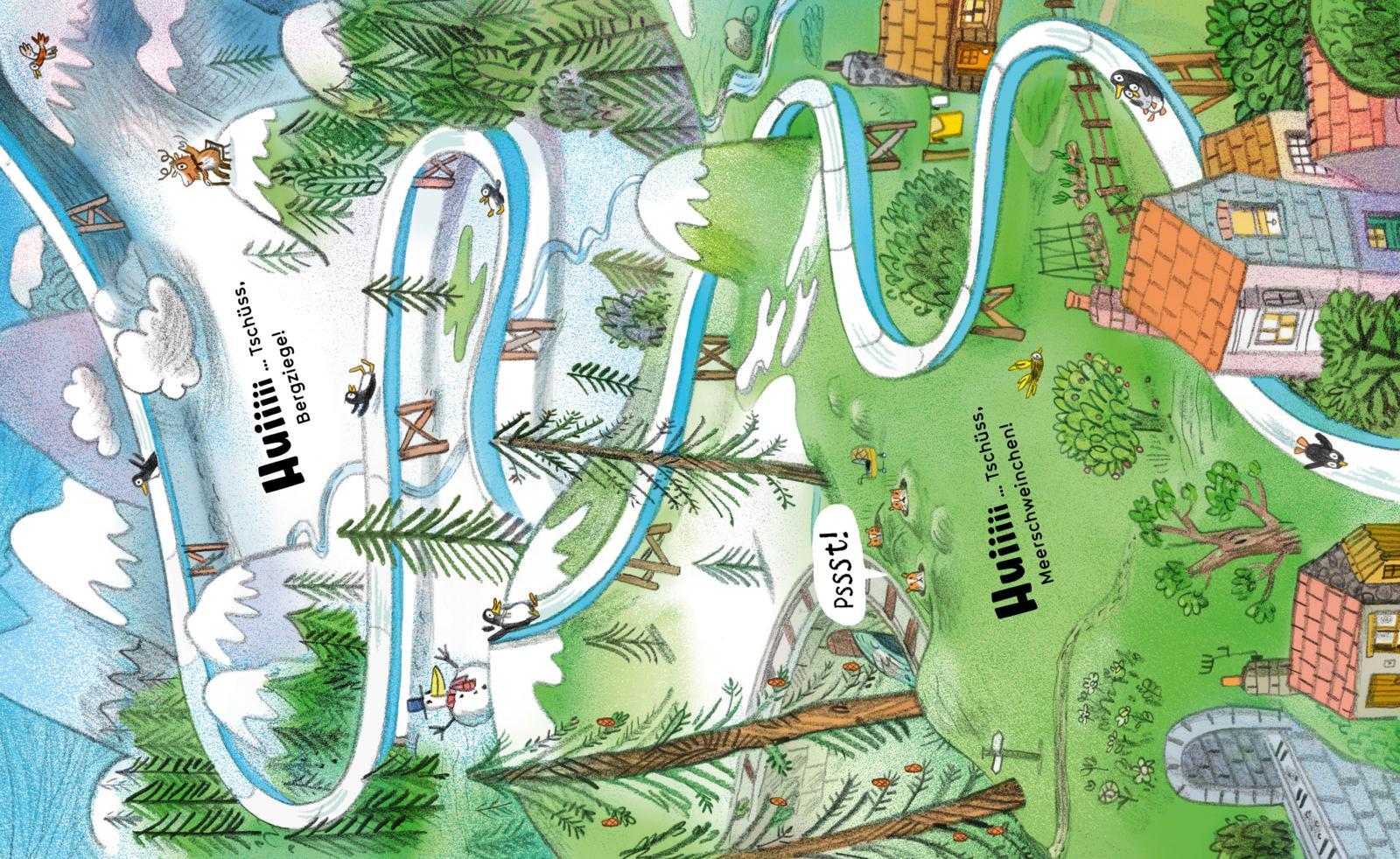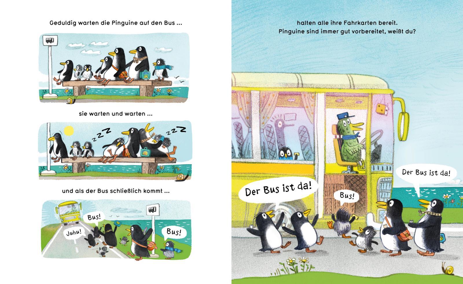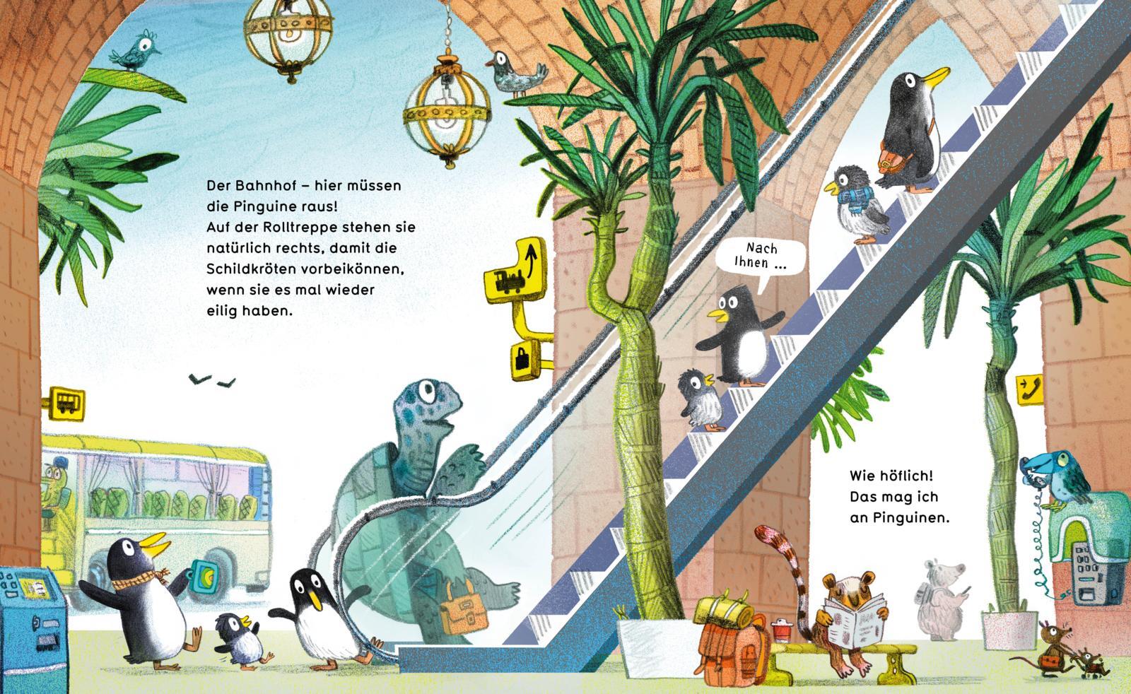 Ein lustiges Bilderbuchabenteuer, das zum wiederholten Anschauen einlädt. Die Pinguinfamilie begibt sich auf eine große Reise! Mit Bus, Bahn und sogar mit der Seilbahn steuert sie ihr Ziel an und lässt sich von nichts und niemand aufhalten, nicht von drängeln...