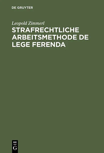 Frontmatter -- Vorwort -- Inhaltsverzeichnis -- I. Grundsätzliches -- II. Bestimmungen der Strafvoraussetzungen nach der systematischen Methode -- III. Von der internationalen Strafrechtsvereinheitlichung -- IV. Von gesetzlichen Beweisregeln und Präsumptionen ...