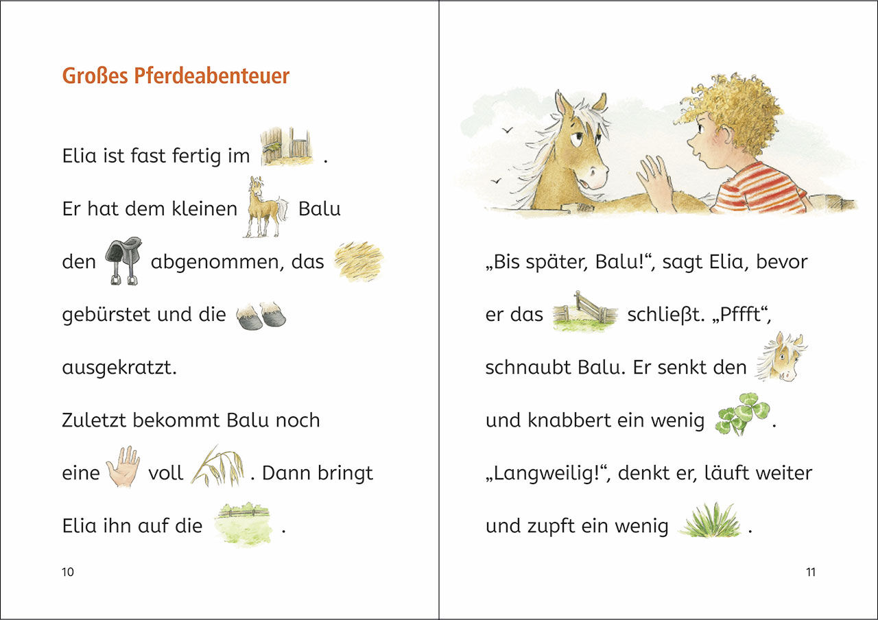 Lesenlernen in 3 Schritten - Die schönsten Pferdegeschichten Geschichten auf unterschiedlichen Leseniveaus lassen das Kind schrittweise zum echten Leseprofi werden. Lesenlernen von Anfang an: Vignettentexte zum ersten Mitlesen, kurze Texte zum gemeinsamen Lese...