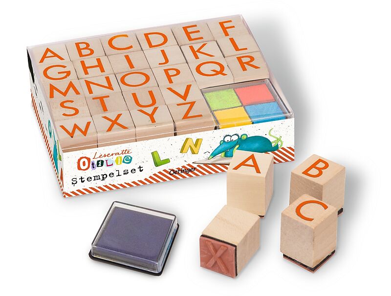 Mit dem multifunktionalen Stempelset von Leseratte Otilie wird Lernen zum bunten Erlebnis! Dieses vielseitige Set umfasst ein vierfarbiges sowie ein einfarbiges Stempelkissen und eine Kollektion von ABC-Stempeln, ideal, um spielerisch das Alphabet zu entdecke...