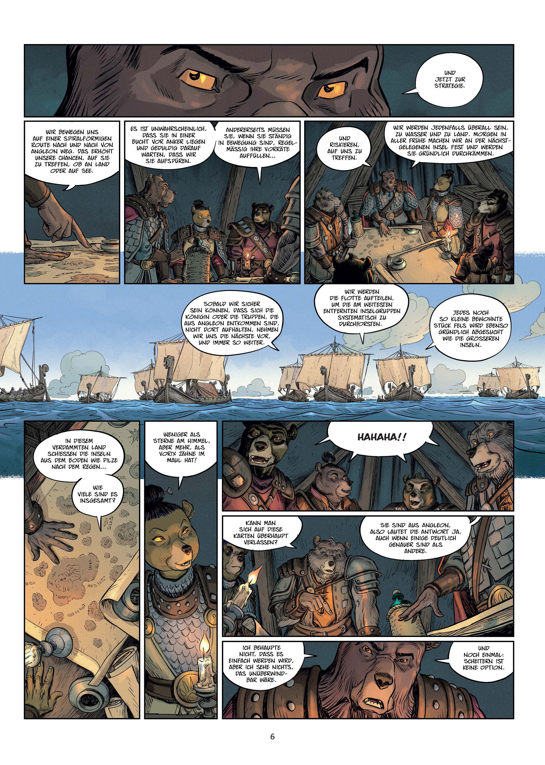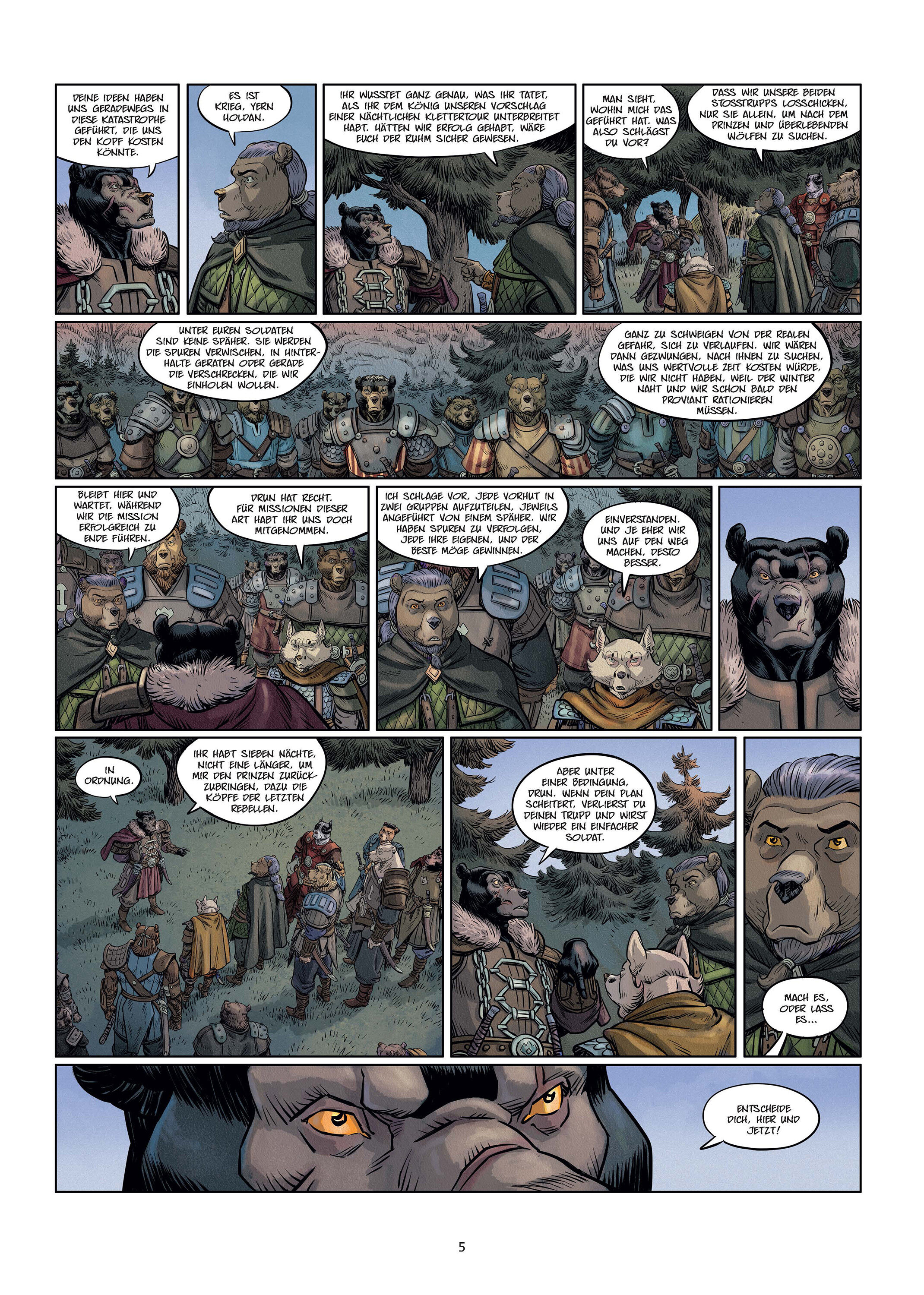 Nach dem romanisch inspirierten Reich der Raubkatzen und dem asiatisch geprägten Affenkönigreich führt der dritte Zyklus von »Die 5 Reiche« uns in die nordischen Ländereien der Bären. Der Krieg zwischen Angleon und Arnor zieht unvermeidlich heran, und die epis...