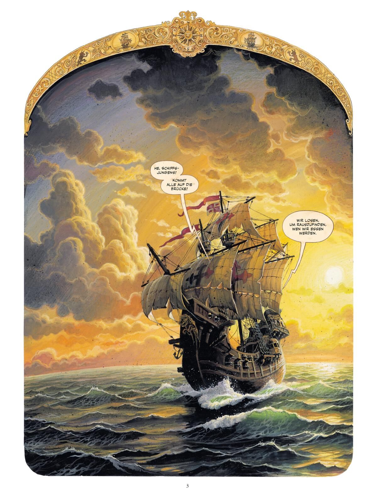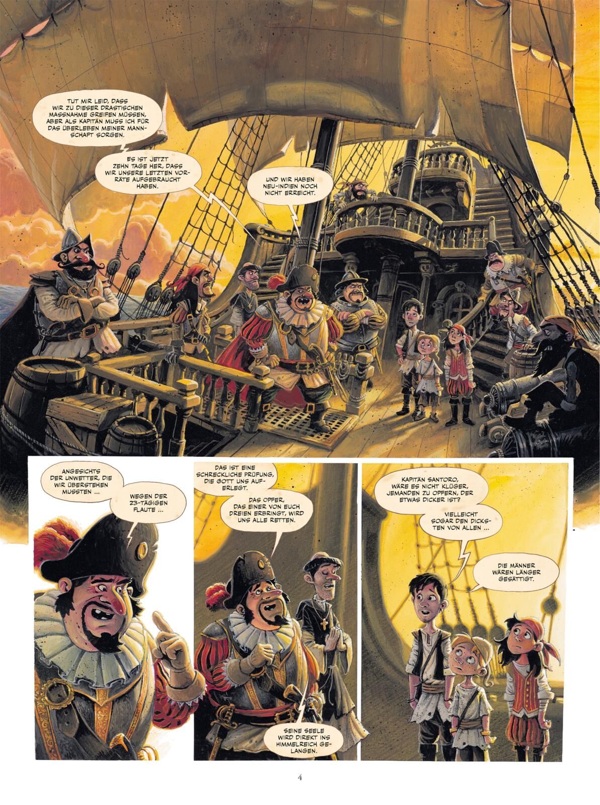 Ein gefährliches Marsupilami-Abenteuer im Dschungel Auf der Galeone des spanischen Kapitäns Santoro geht es drunter und drüber. Denn die Vorräte gehen zur Neige und es werden Lose unter den Schiffsjungen gezogen ... wer gegessen wird! Doch kurz bevor der jung...