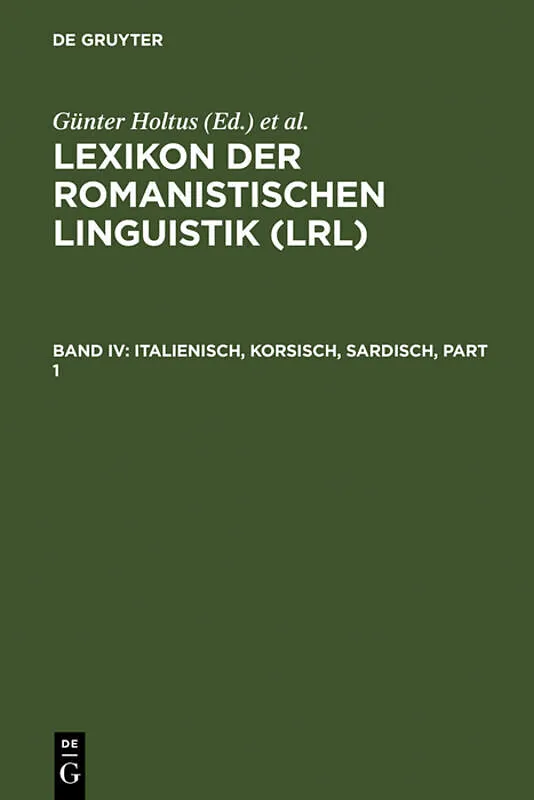 Keine ausführliche Beschreibung für "Italienisch, Korsisch, Sardisch" verfügbar. Klappentext Das LRL (8 Bände mit Halbbänden, 1988 2005) beschreibt zum ersten Mal in einem einzigen, einheitlich konzipierten Werk ausführlich alle romanischen Sprachen,...