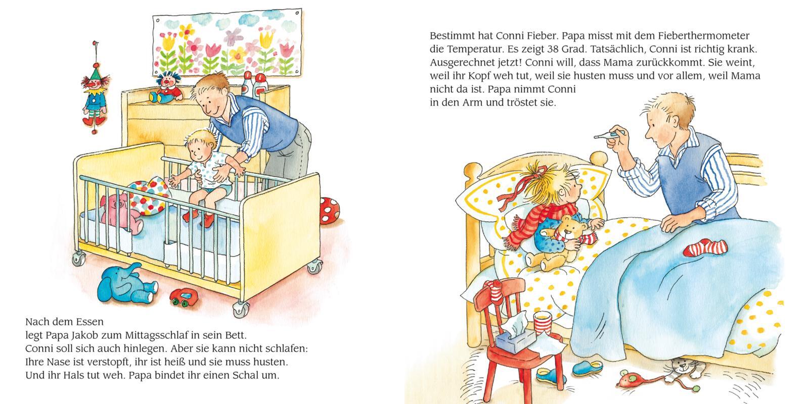 Gute Besserung, Conni! Conni fühlt sich nicht gut. Der Hals tut weh, ständig läuft die Nase und auch das Lieblingsessen schmeckt ihr nicht mehr. Ausgerechnet jetzt ist Mama nicht da! Zum Glück weiß Papa, was zu tun ist, wenn man krank wird. Und auch Oma hat t...