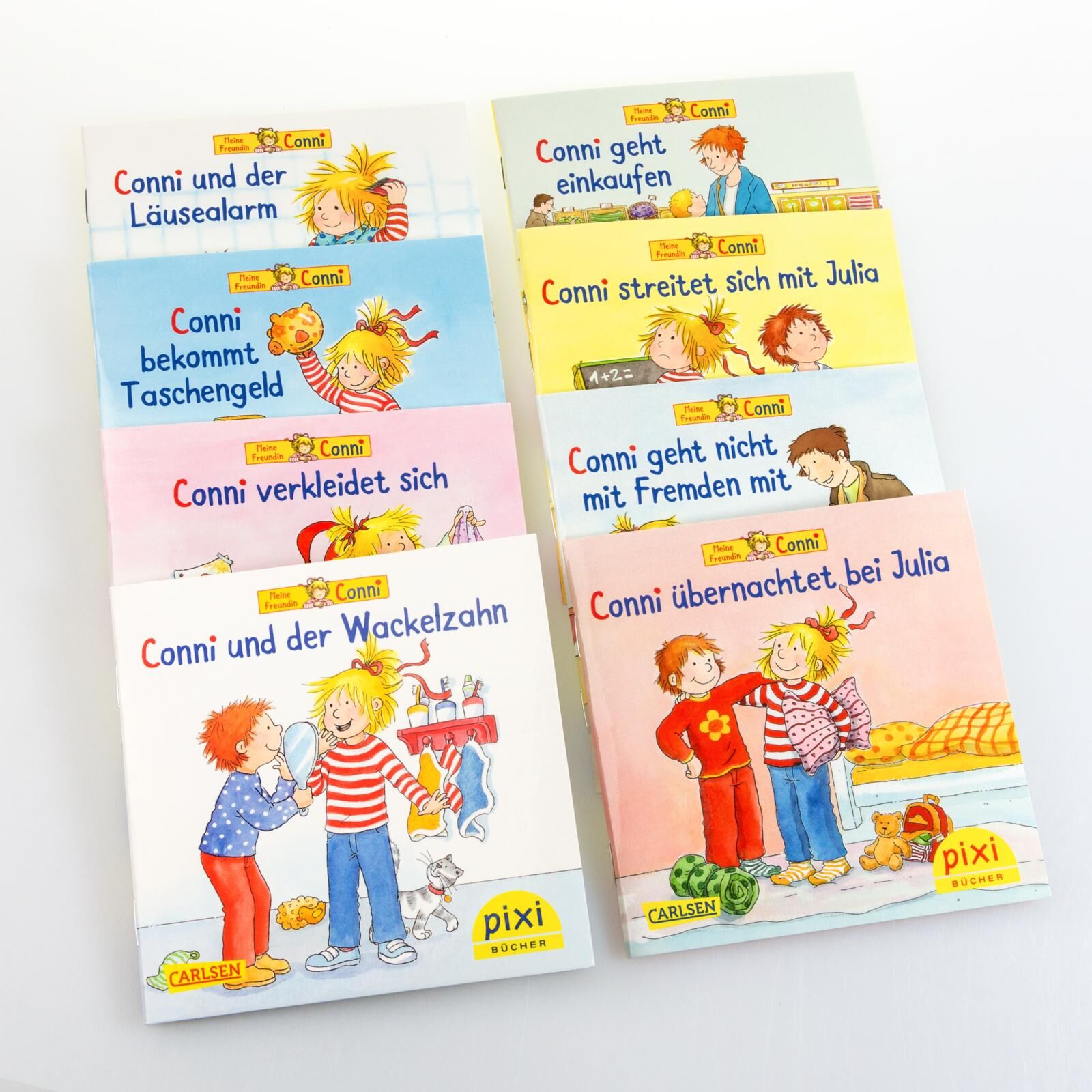 Acht neue Pixis von Kinder-Liebling Conni, und immer geht's um Top-Themen des Kindergartenalters: auswärts übernachten, streiten und vertragen, Taschengeld, Wackelzahn, Läusealarm und ganz wichtig: nicht mit Fremden mitgehen. In der Pixi-Serie "Meine Freundin...