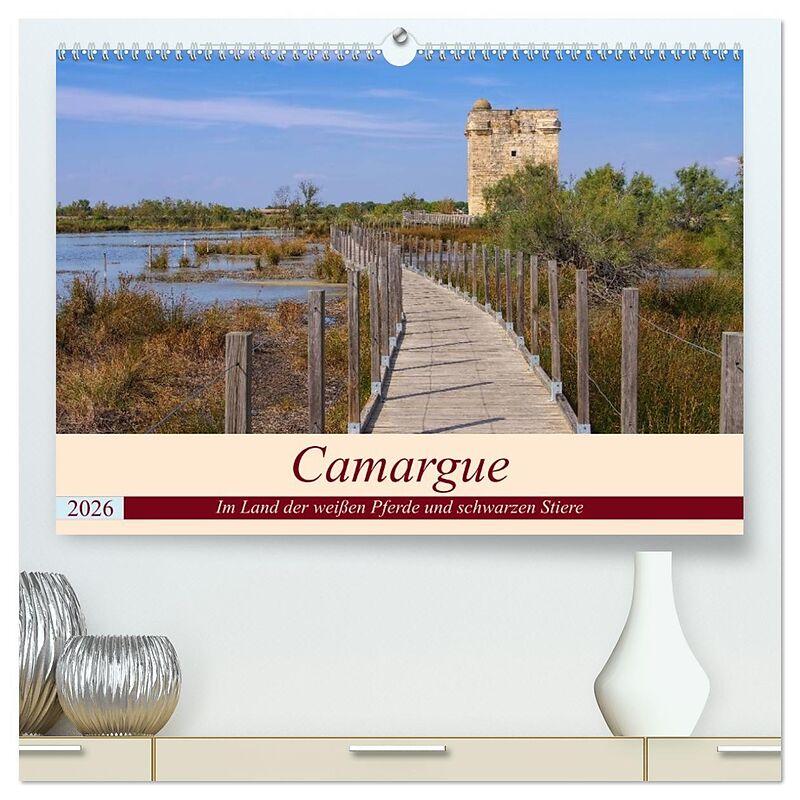 Camargue - Im Land der weißen Pferde und schwarzen Stiere (hochwertiger Premium Wandkalender 2026 DIN A2 quer), Kunstdruck in Hochglanz