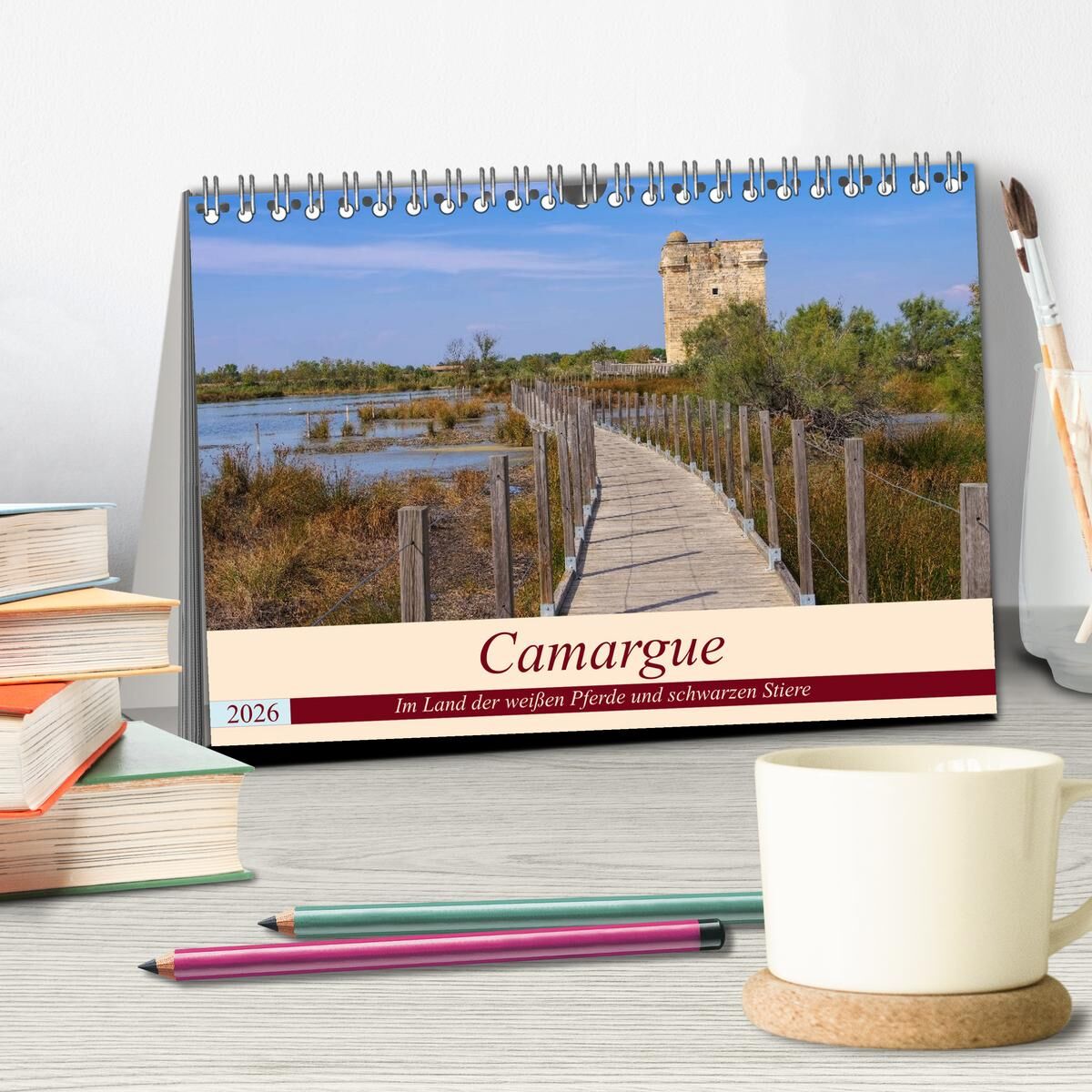 Camargue - Im Land der weißen Pferde und schwarzen Stiere (Tischkalender 2026 DIN A5 quer), CALVENDO Monatskalender