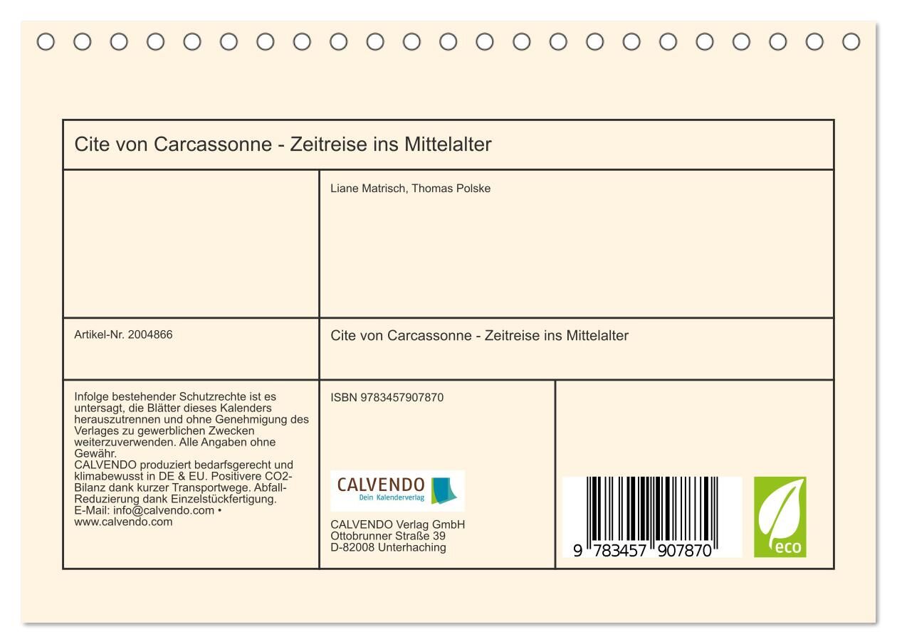 Cite von Carcassonne - Zeitreise ins Mittelalter (Tischkalender 2026 DIN A5 quer), CALVENDO Monatskalender