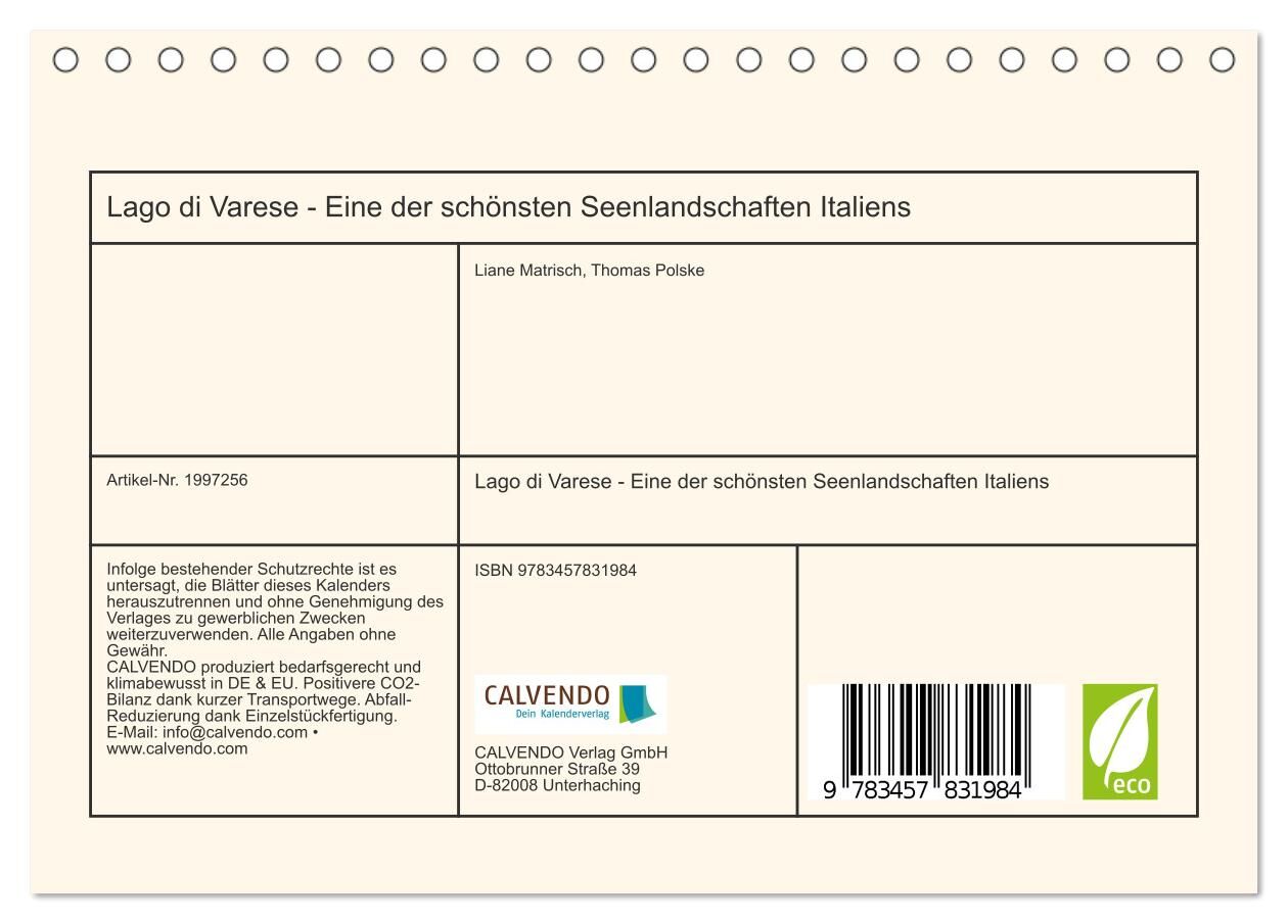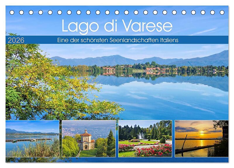 Der Lago di Varese und weitere kleine Seen liegen malerisch zwischen dem Lago Maggiore und Comer See. Im Hintergrund kann man die Alpenkette und das Campo-dei-Fiori-Massiv bewundern. Entdecken Sie in diesem Kalender u.a. die Gartenstadt Varese, Ausblicke vom H...