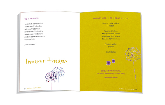 Wenn jeder von uns jeden Tag ein Samenkorn der Menschlichkeit legt, wird die Erde für alle wieder hoffnungsgrün (Maria Sassin). Diese Worte entzünden kleine Lichter des Friedens und schenken Hoffnung auf eine menschlichere Zukunft. Mit Texten von Gisela Baltes...