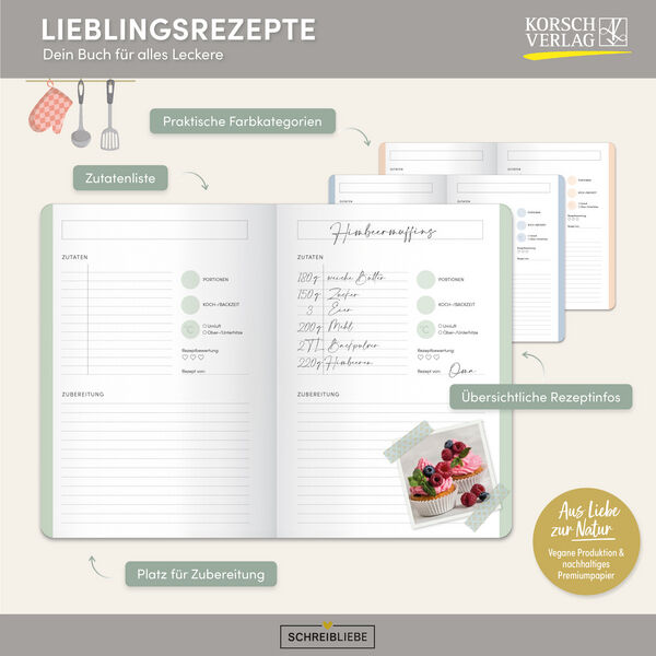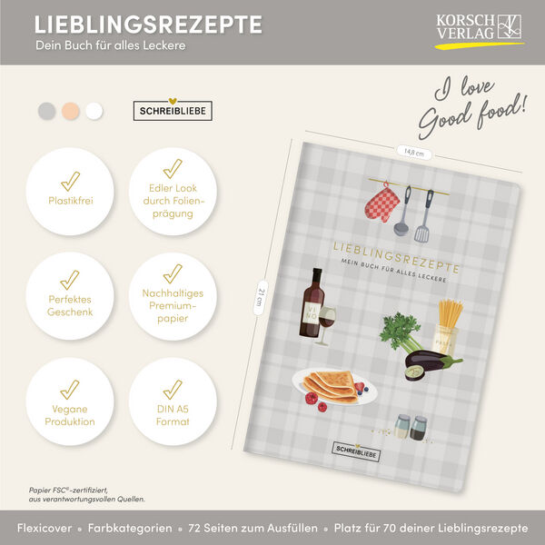 Halte 70 deiner liebsten Rezepte zum Kochen und Backen in diesem persönlichen Rezeptbuch fest. Teile deine Rezepte mit Hilfe der Farben in eigene Kategorien ein. Ideale Geschenkidee: Du kannst das Buch leer oder mit Rezepten gefüllt verschenken. Ob für Freund...