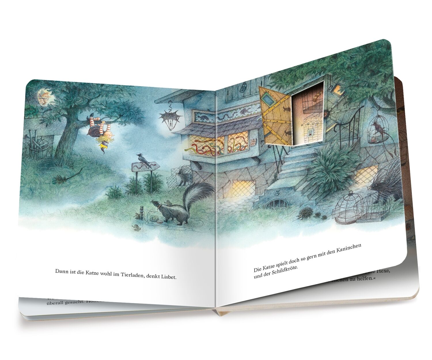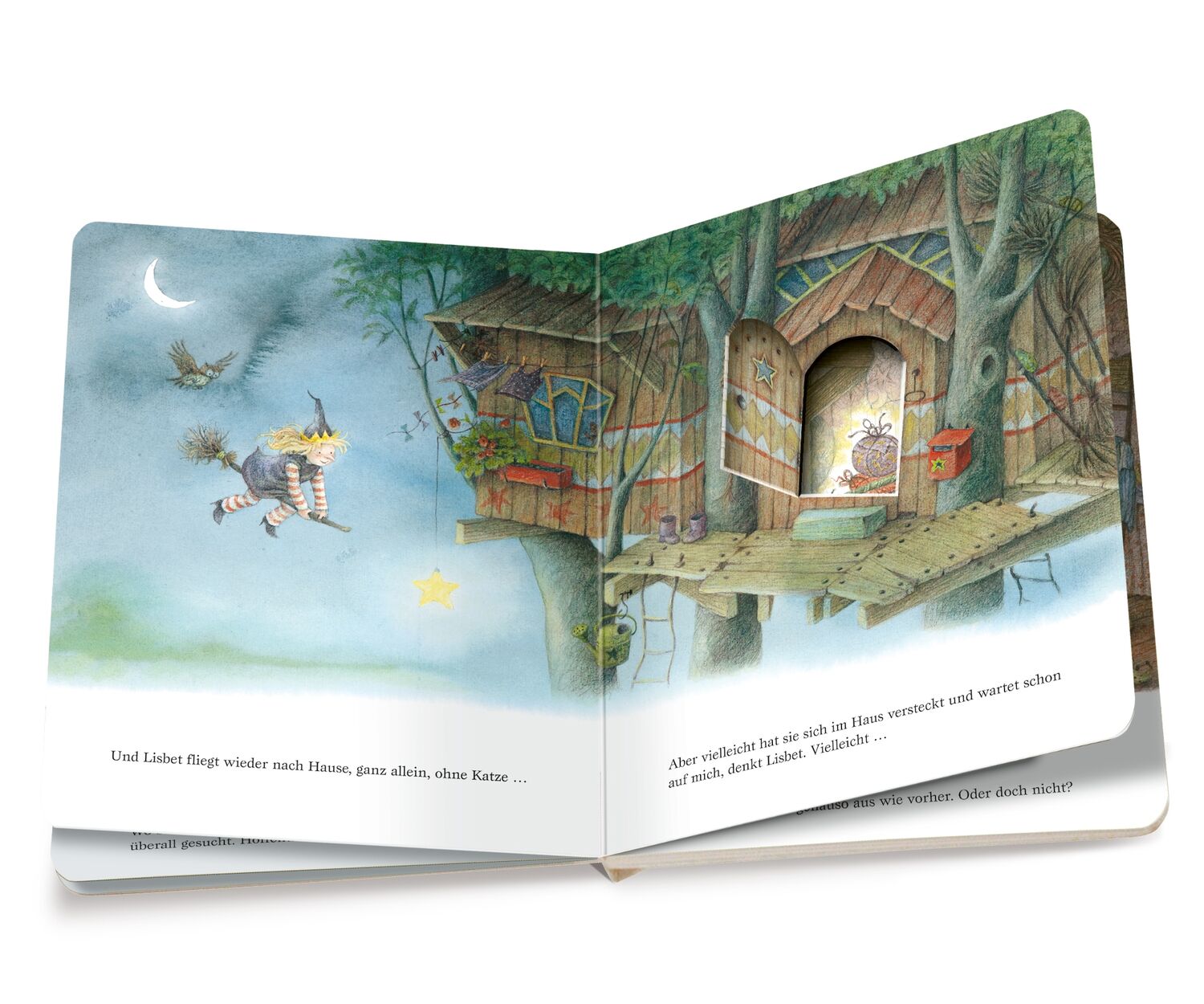 Lisbet, die kleine Hexe, sucht ihre Katze! Gemeinsam mit den Kindern schaut sie hinter alle Türchen und Klappen, aber die Katze ist nirgends zu finden. Dabei hat Lisbet heute doch Geburtstag und ohne ihre Katze will sie nicht feiern. Doch am Abend, als Lisbet ...