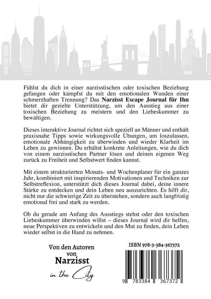Fühlst du dich in einer narzisstischen oder toxischen Beziehung gefangen oder kämpfst du mit den emotionalen Wunden einer schmerzhaften Trennung? Das Narzisst Escape Journal für Ihn bietet dir gezielte Unterstützung, um den Ausstieg aus einer toxischen Beziehu...