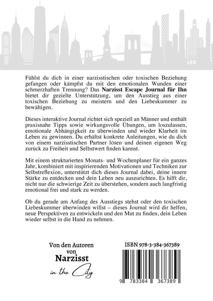 Fühlst du dich in einer narzisstischen oder toxischen Beziehung gefangen oder kämpfst du mit den emotionalen Wunden einer schmerzhaften Trennung? Das Narzisst Escape Journal für Ihn bietet dir gezielte Unterstützung, um den Ausstieg aus einer toxischen Beziehu...