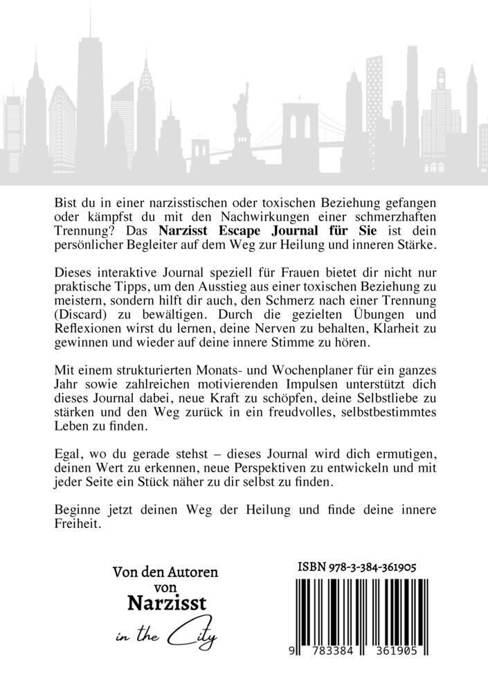 Bist du in einer narzisstischen oder toxischen Beziehung gefangen oder kämpfst du mit den Nachwirkungen einer schmerzhaften Trennung? Das Narzisst Escape Journal für Sie ist dein persönlicher Begleiter auf dem Weg zur Heilung und inneren Stärke. Dieses interak...
