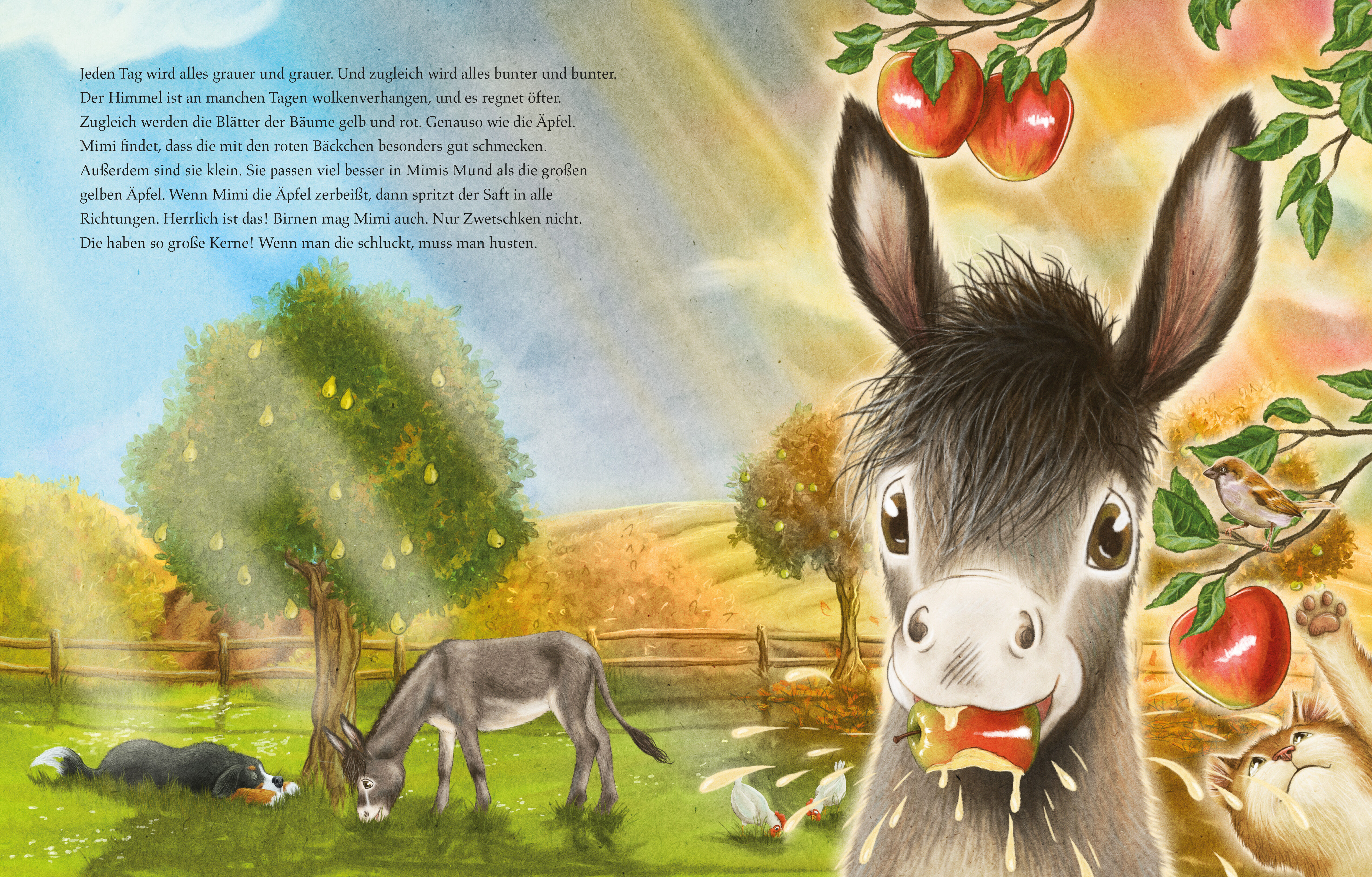Eselchen Mimi erlebt die Freude der Erntezeit in einem Buch über die Schönheit des Herbstes und das gemeinsame Feiern . Ein neues Abenteuer mit Eselchen Mimi ! Es ist Herbst. Mimi ist voller Vorfreude, denn alles wird bunter und bunter. Am Bauernhof von Famil...