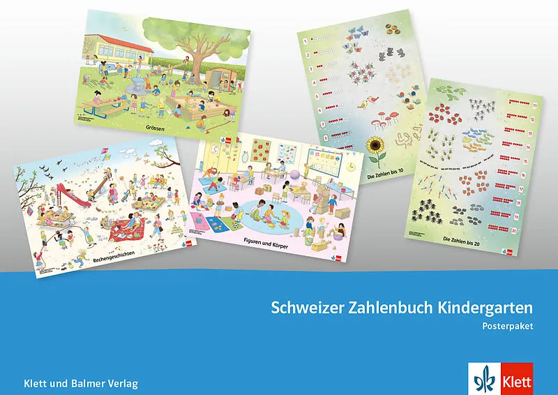 Das Posterpaket enthält fünf reichhaltige Poster im Format A1 zu den mathematischen Themen Zahlen, Anzahlen, Grössen, Form und Raum.