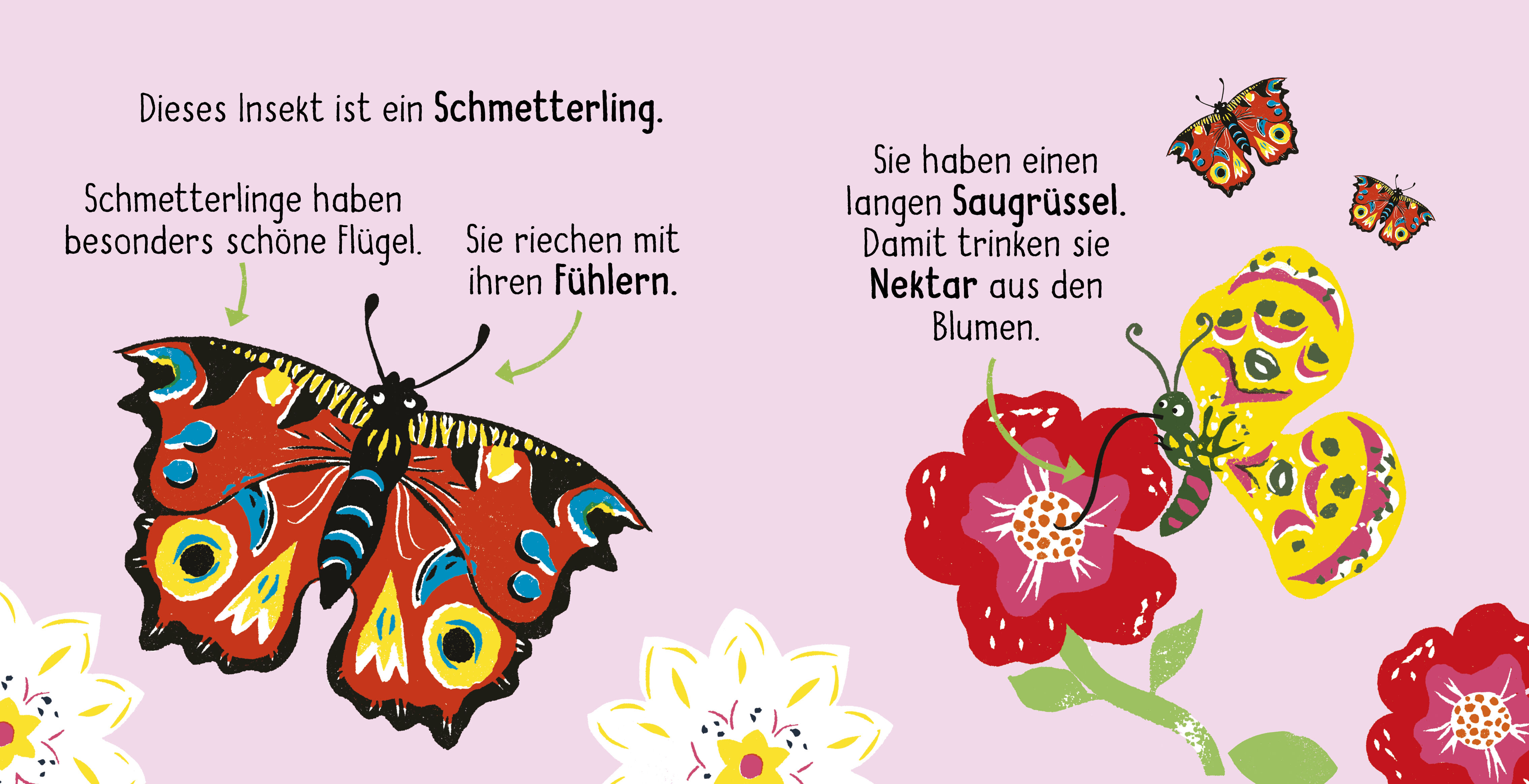 Entdecke Spinnen, Schmetterlinge, Käfer und viele mehr. Lerne außerdem spannende neue Wörter kennen, mit denen du diese Krabbeltiere genau beschreiben kannst! Dieses Buch ist Teil einer Reihe, welche einen ersten Wortschatz über die Natur vermitteln möchte. N...