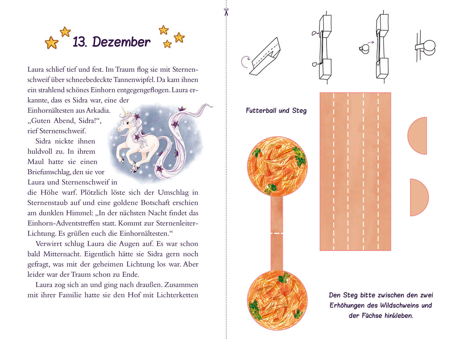 Der interaktive Adventskalender für Einhorn-Fans ab 5 Jahren! Ein winterliches Abenteuer in 24 Kapiteln zum Vorlesen und jeden Tag zwei Bastelelemente zum Ausschneiden und Falten. So entsteht bis Weihnachten ein bespielbares Sternenschweif-Diorama. Die Erfolgs...