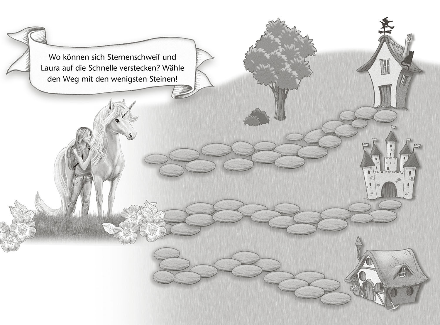 Ein altes, leeres Eintragbuch aus dem Trödelladen fängt plötzlich an, Laura Rätsel zu stellen und Anleitungen zu geben. Es führt Laura und Sternenschweif zu einem Pony, das hinter hohen Mauern lebt. Die beiden möchten das Pony befreien, doch dazu brauchen sie ...
