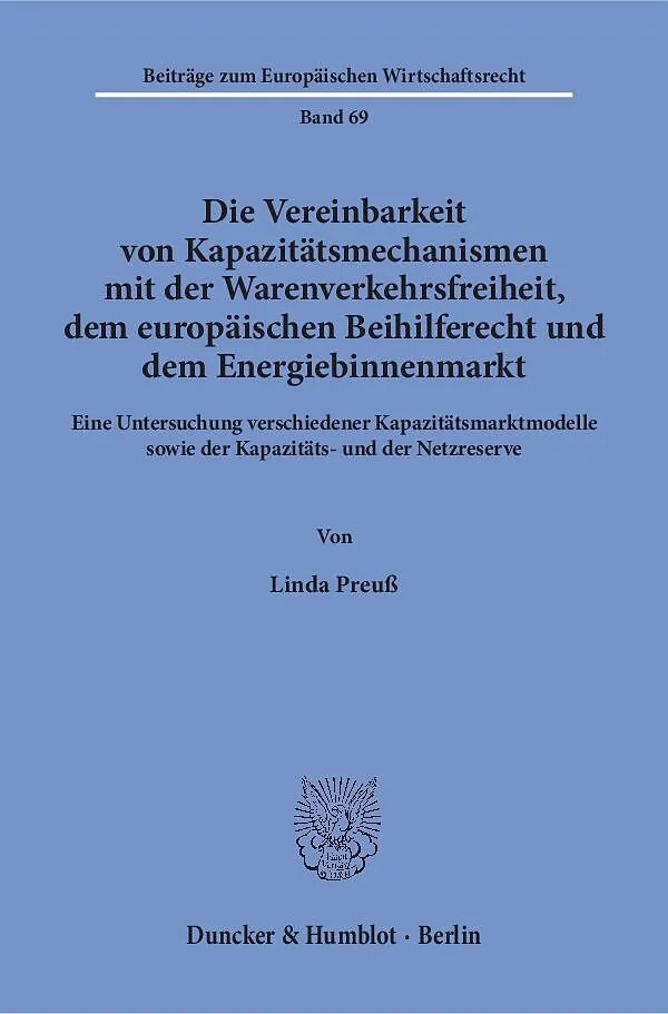 Angesichts des Zuwachses erneuerbarer Energieerzeugung steht auch in Deutschland seit einigen Jahren die Implementierung eines Kapazitätsmarktmodells zur Diskussion. Sog. Reservelösungen sind teilweise schon eingeführt worden. Die Arbeit untersucht die Konform...